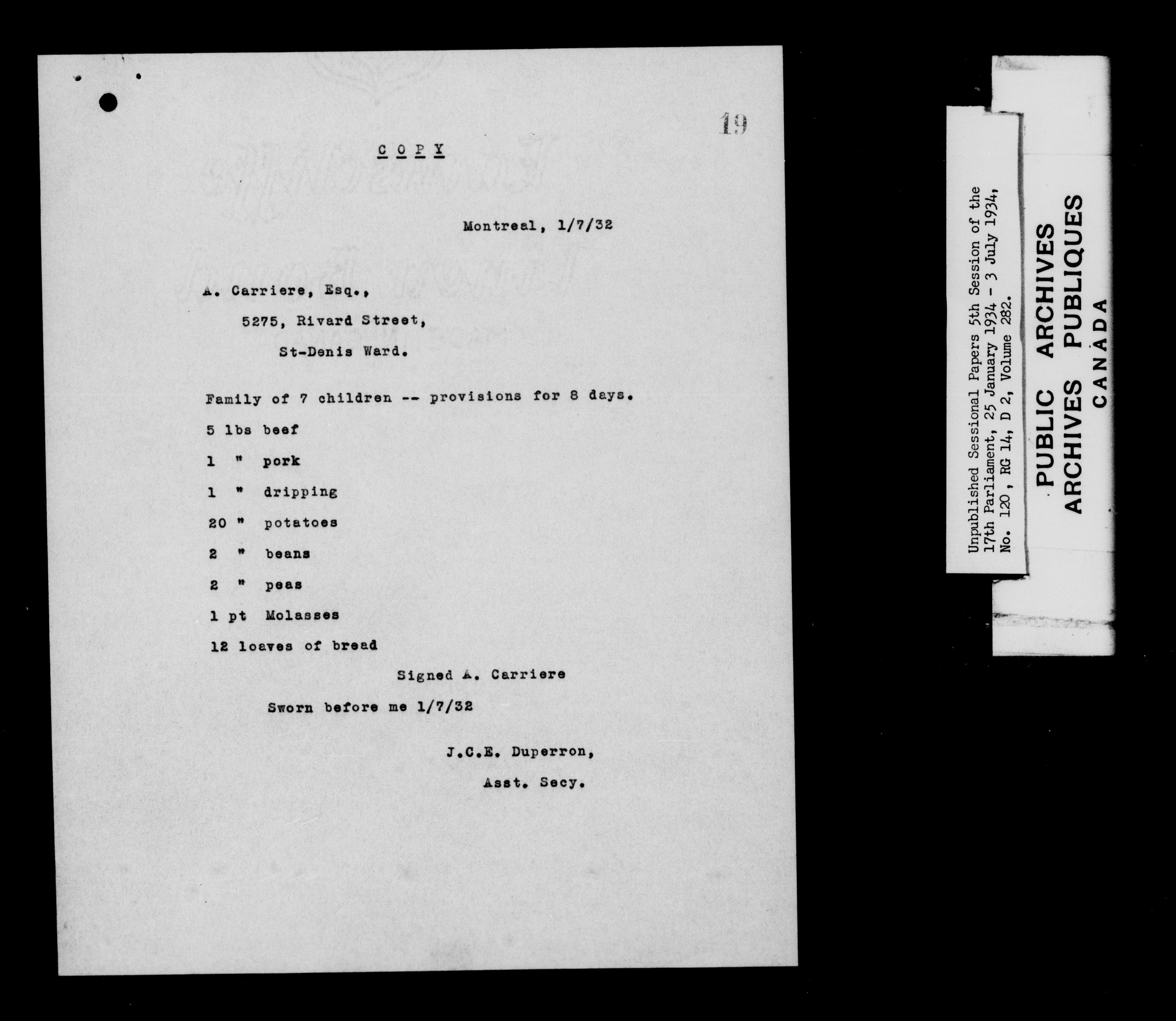Unpublished sessional papers, 5th session of the 17th Parliament, 25 January - 3 July 1934 - 7606