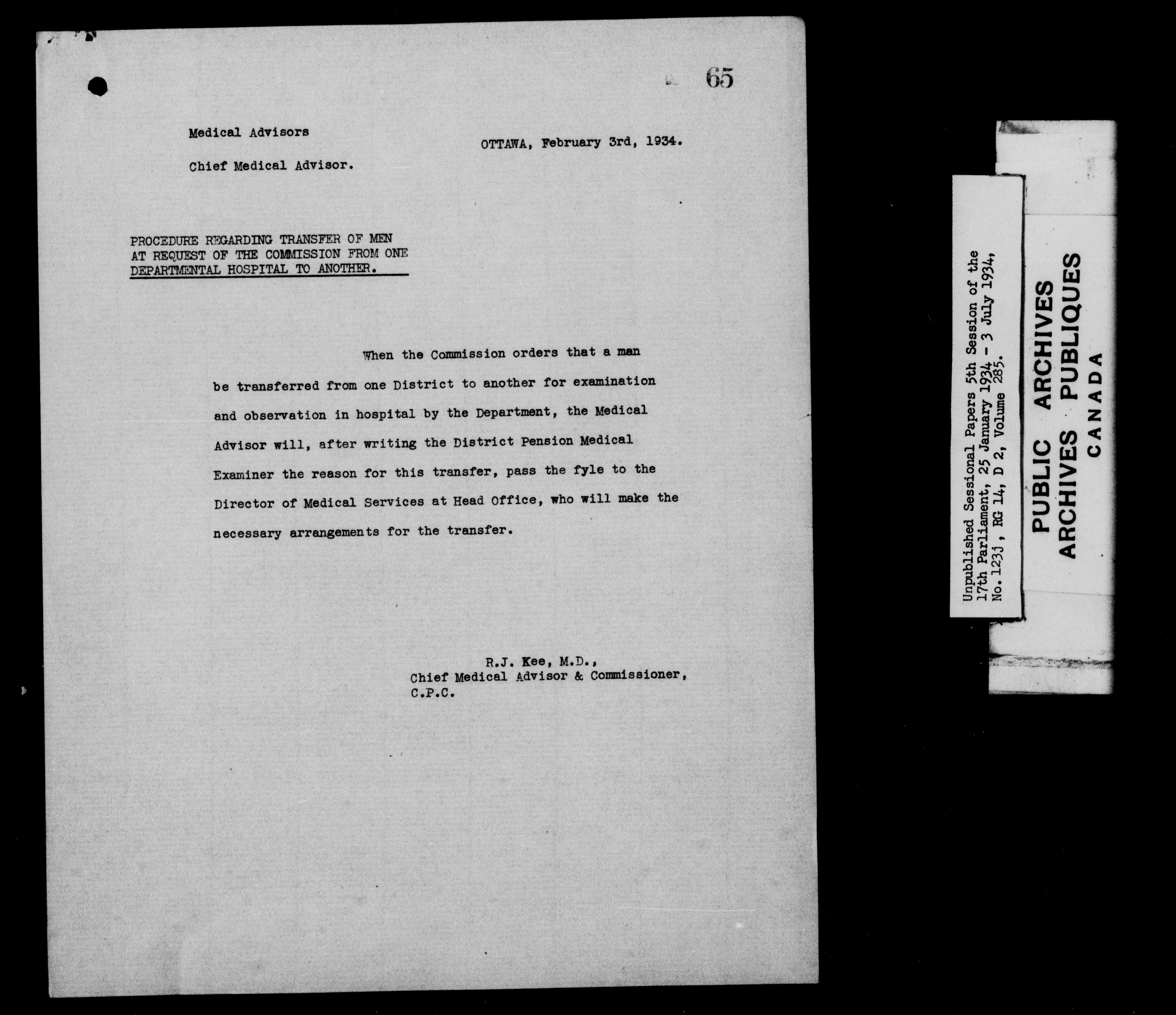 Unpublished sessional papers, 5th session of the 17th Parliament, 25 January - 3 July 1934 - 7608