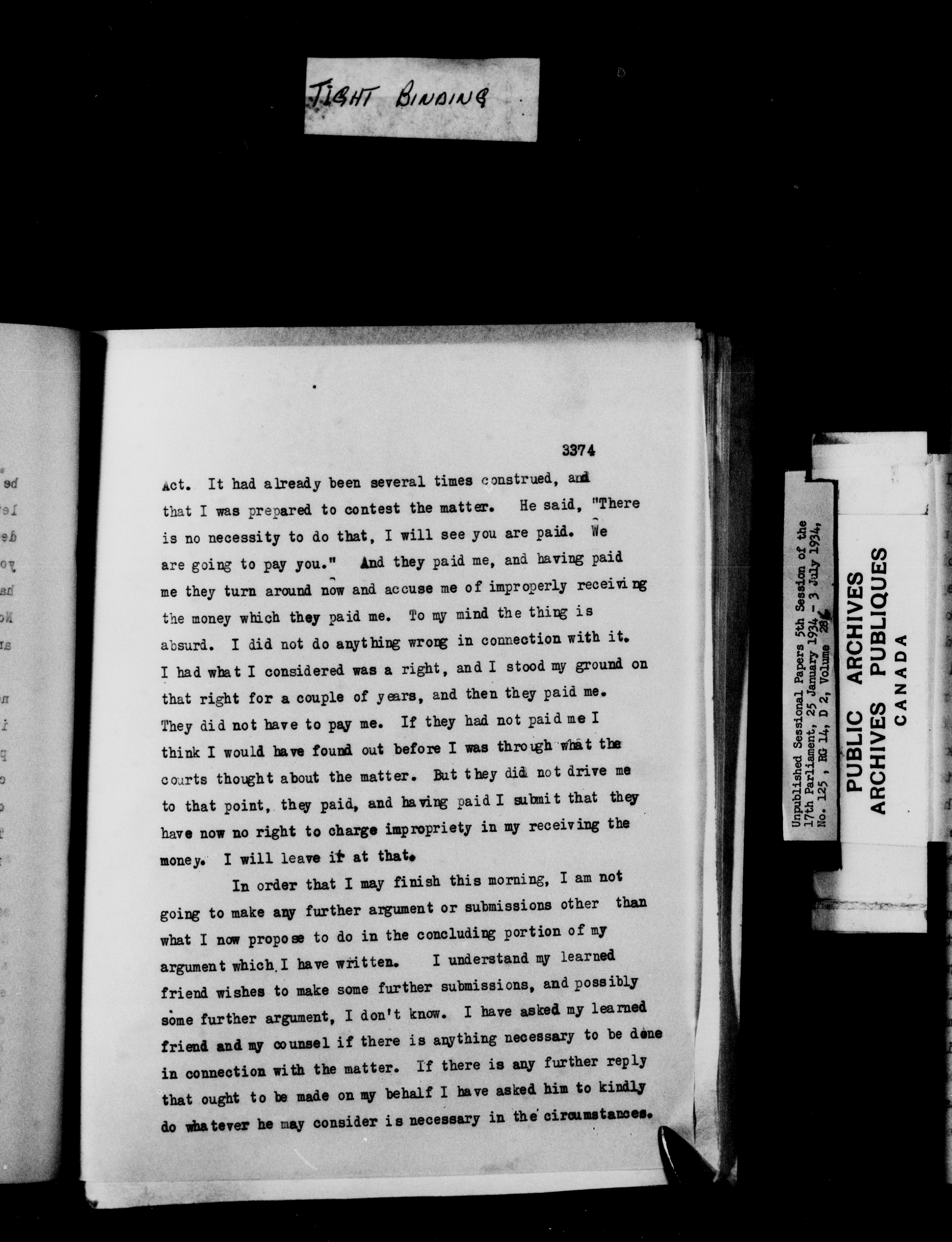 Unpublished sessional papers, 5th session of the 17th Parliament, 25 January - 3 July 1934 - 7609