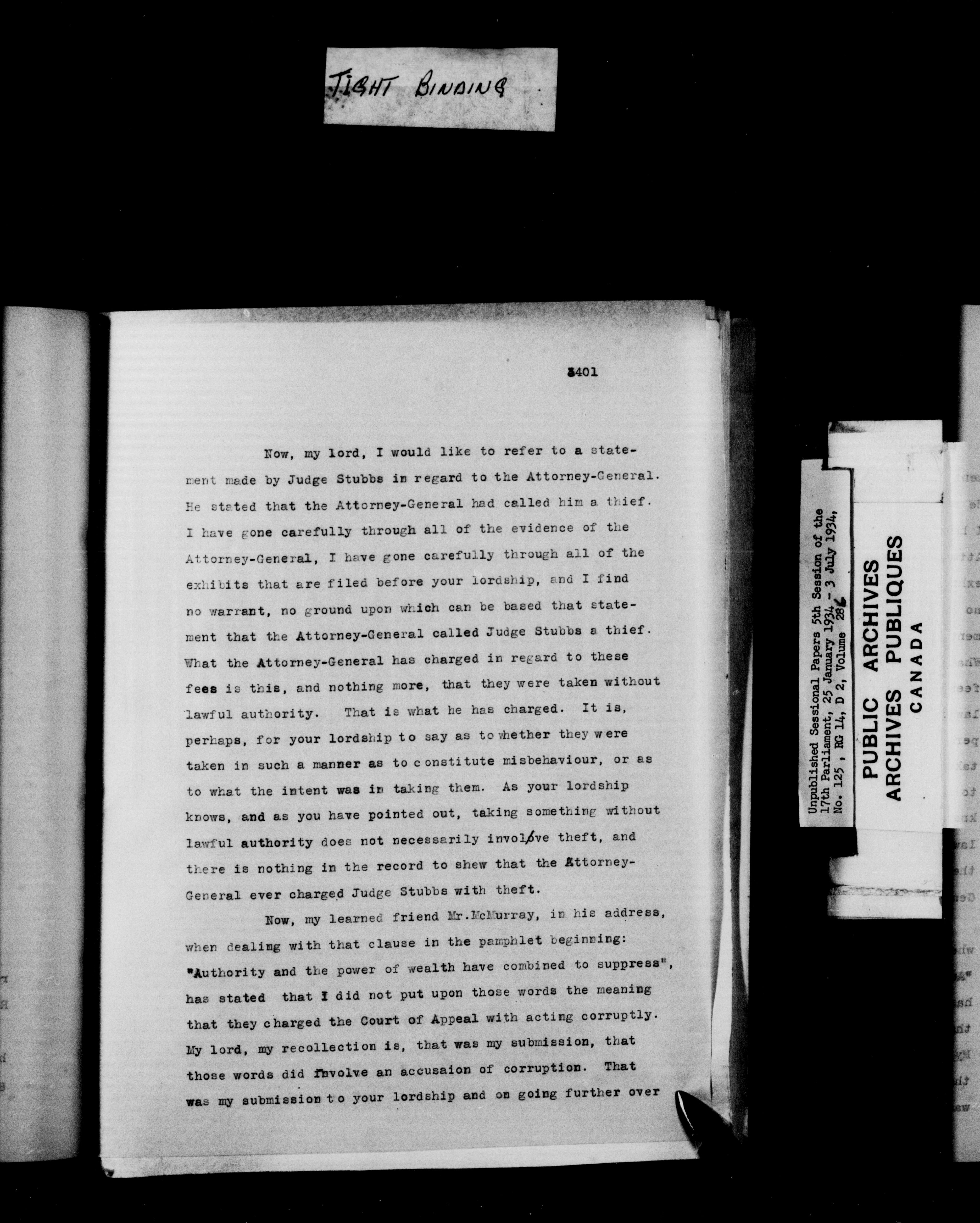 Unpublished sessional papers, 5th session of the 17th Parliament, 25 January - 3 July 1934 - 7609