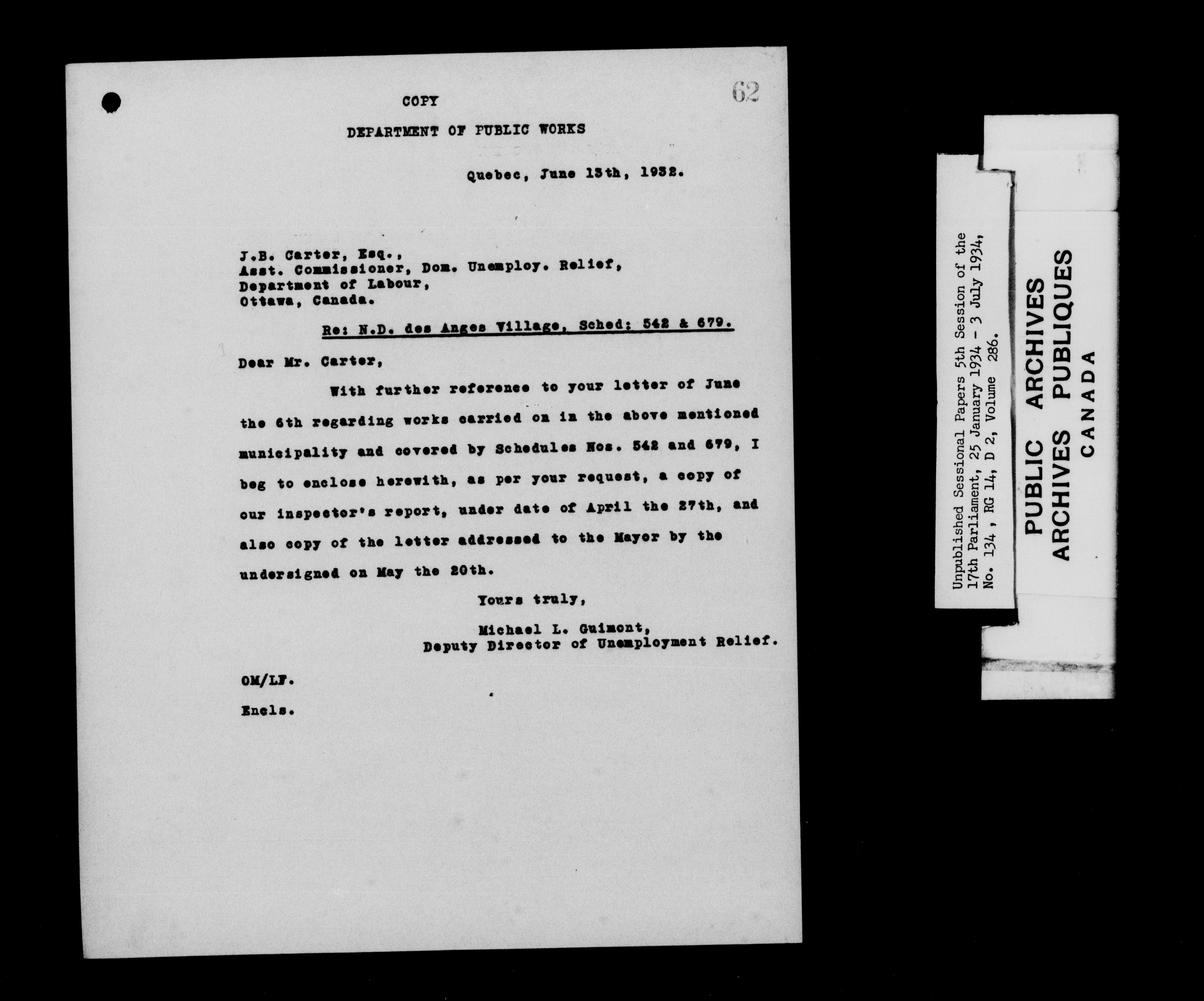 Unpublished sessional papers, 5th session of the 17th Parliament, 25 January - 3 July 1934 - 7610