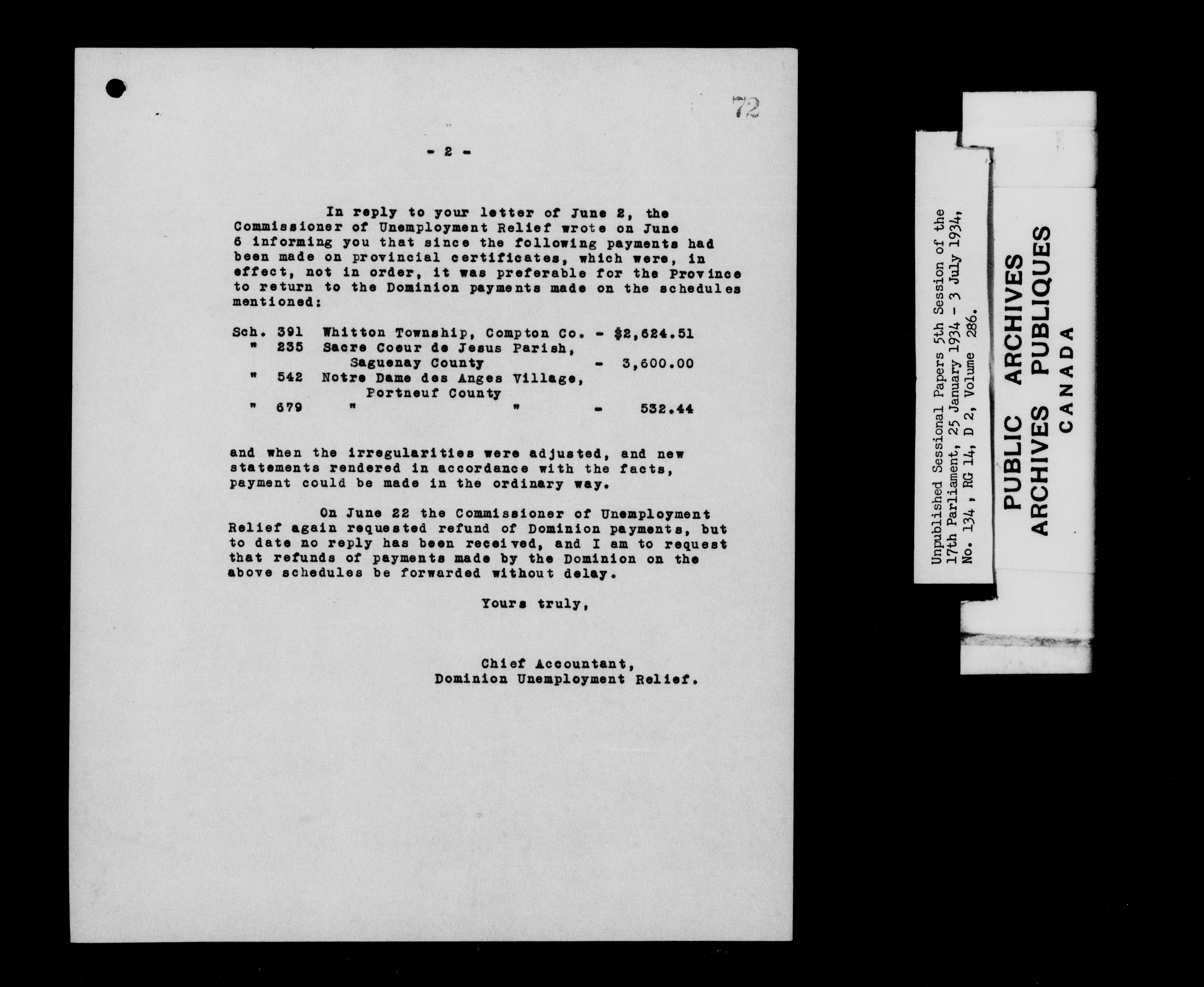 Unpublished sessional papers, 5th session of the 17th Parliament, 25 January - 3 July 1934 - 7610