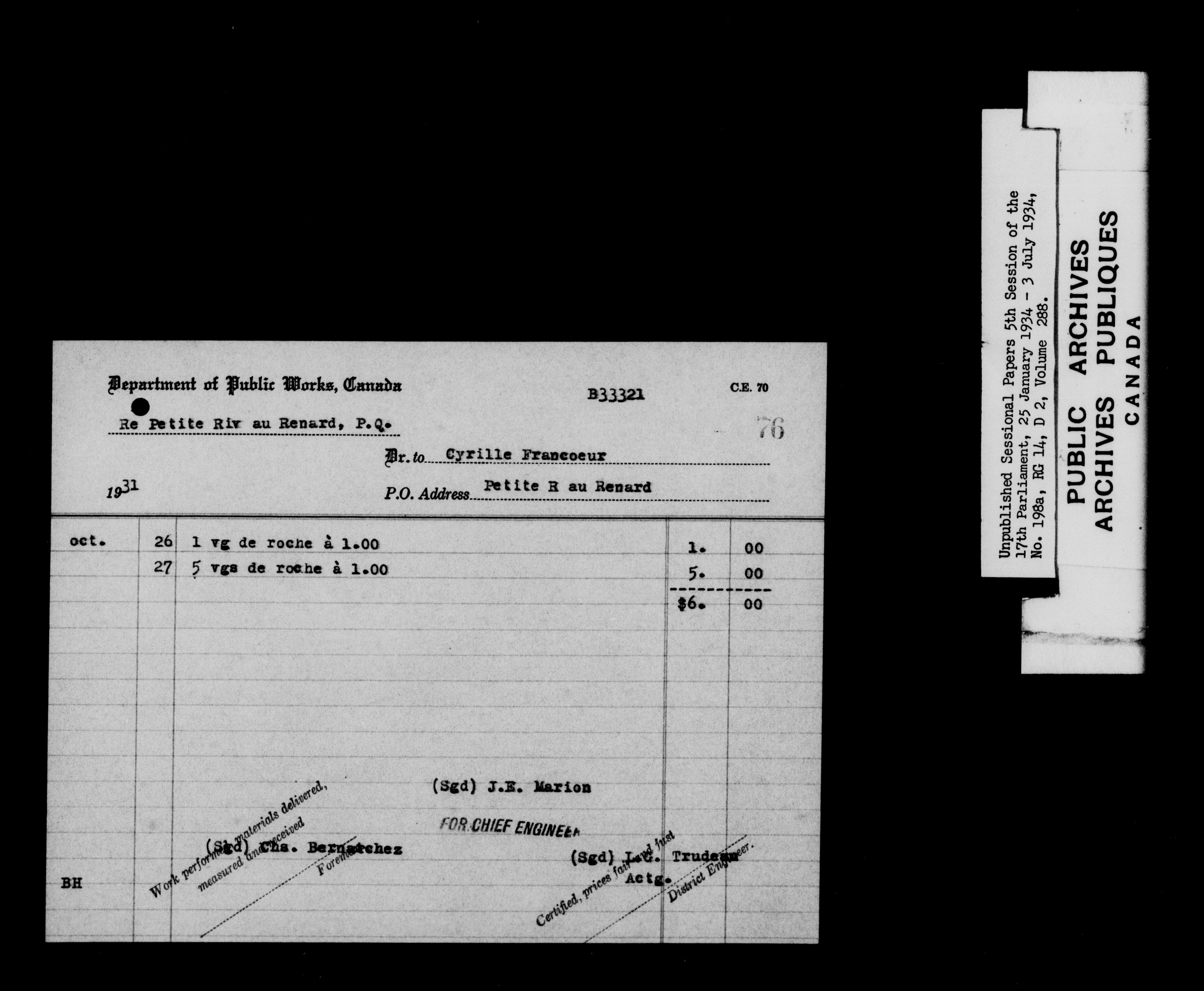 Unpublished sessional papers, 5th session of the 17th Parliament, 25 January - 3 July 1934 - 7611