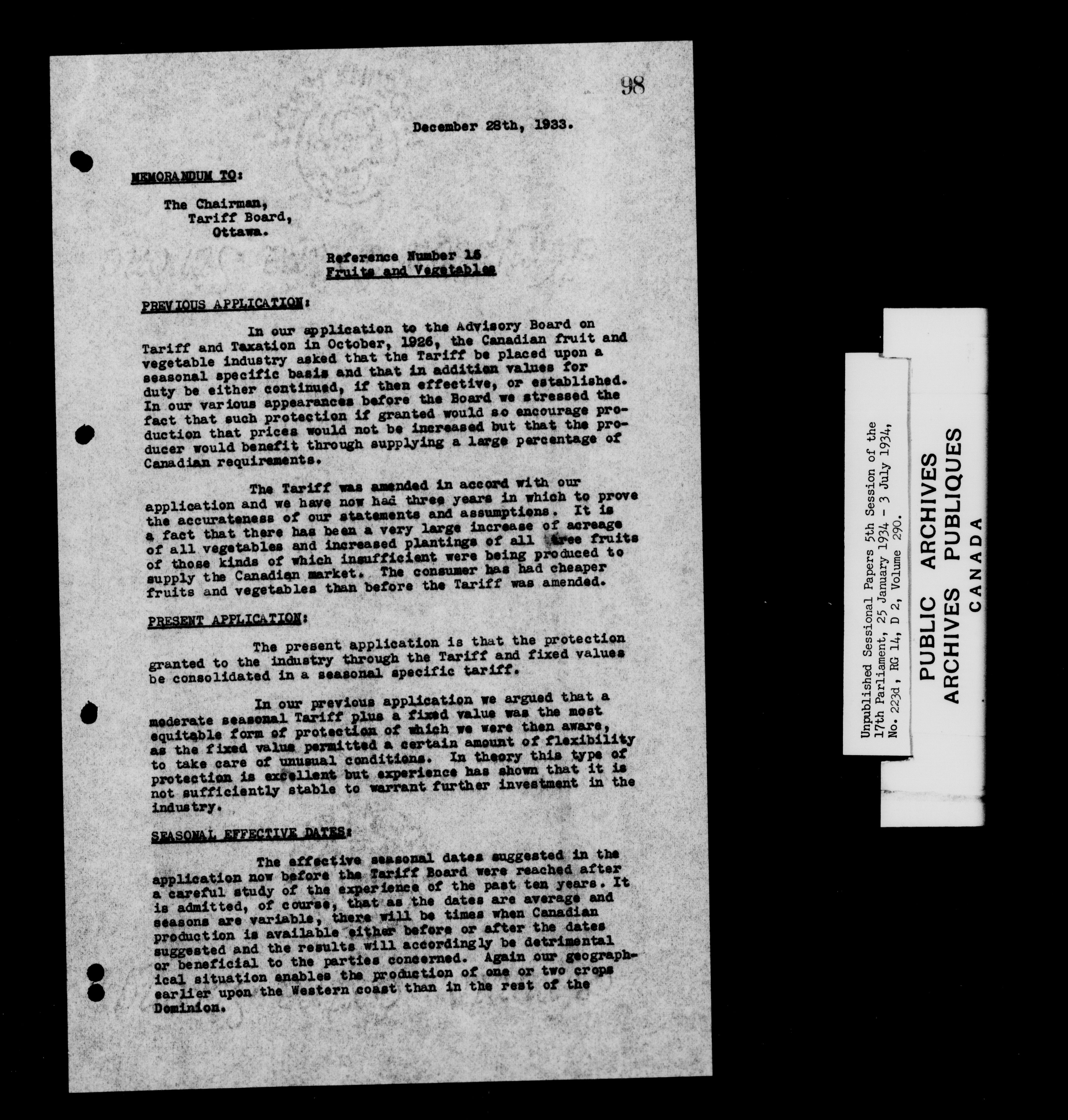 Unpublished sessional papers, 5th session of the 17th Parliament, 25 January - 3 July 1934 - 7612