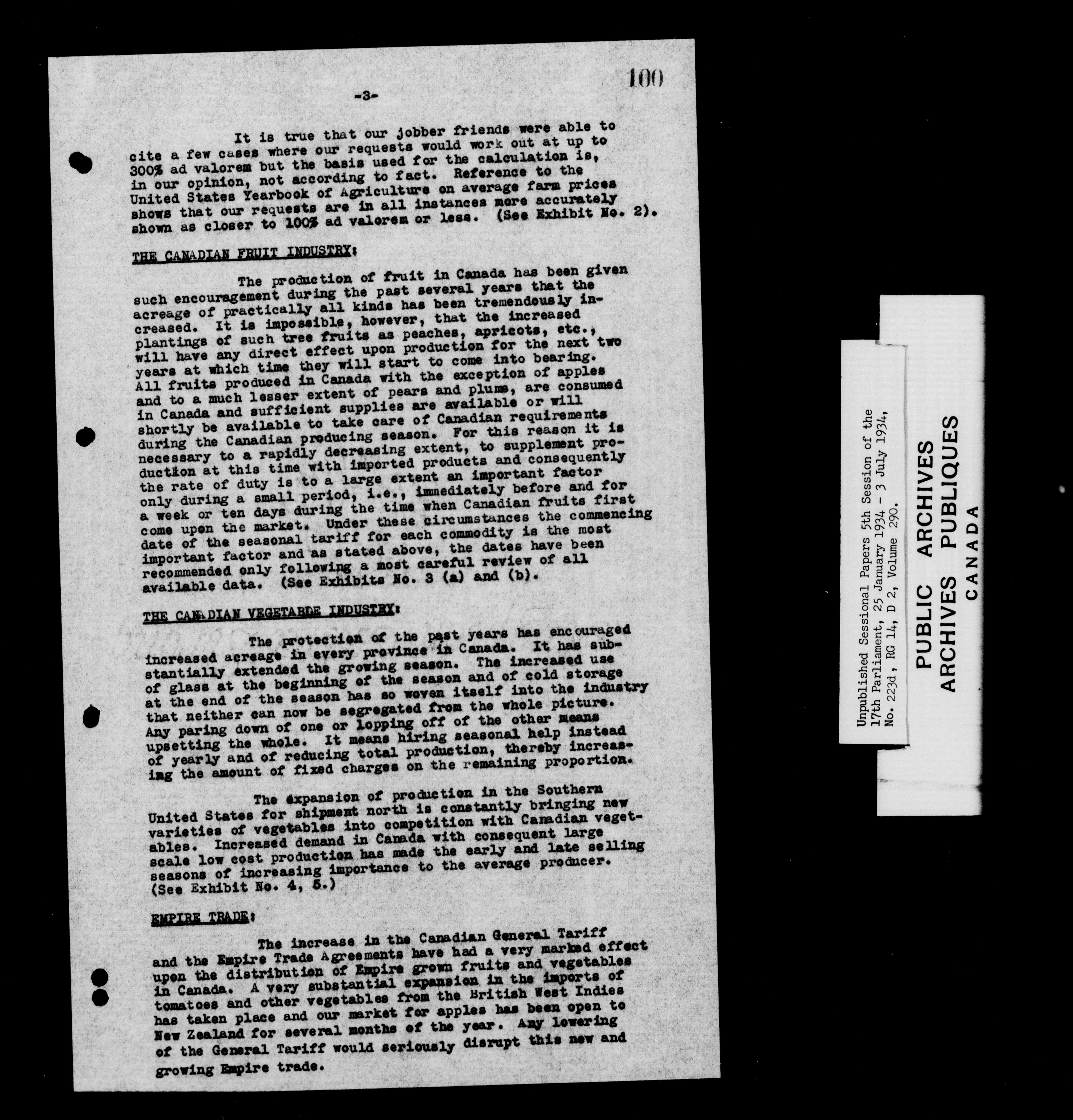 Unpublished sessional papers, 5th session of the 17th Parliament, 25 January - 3 July 1934 - 7612