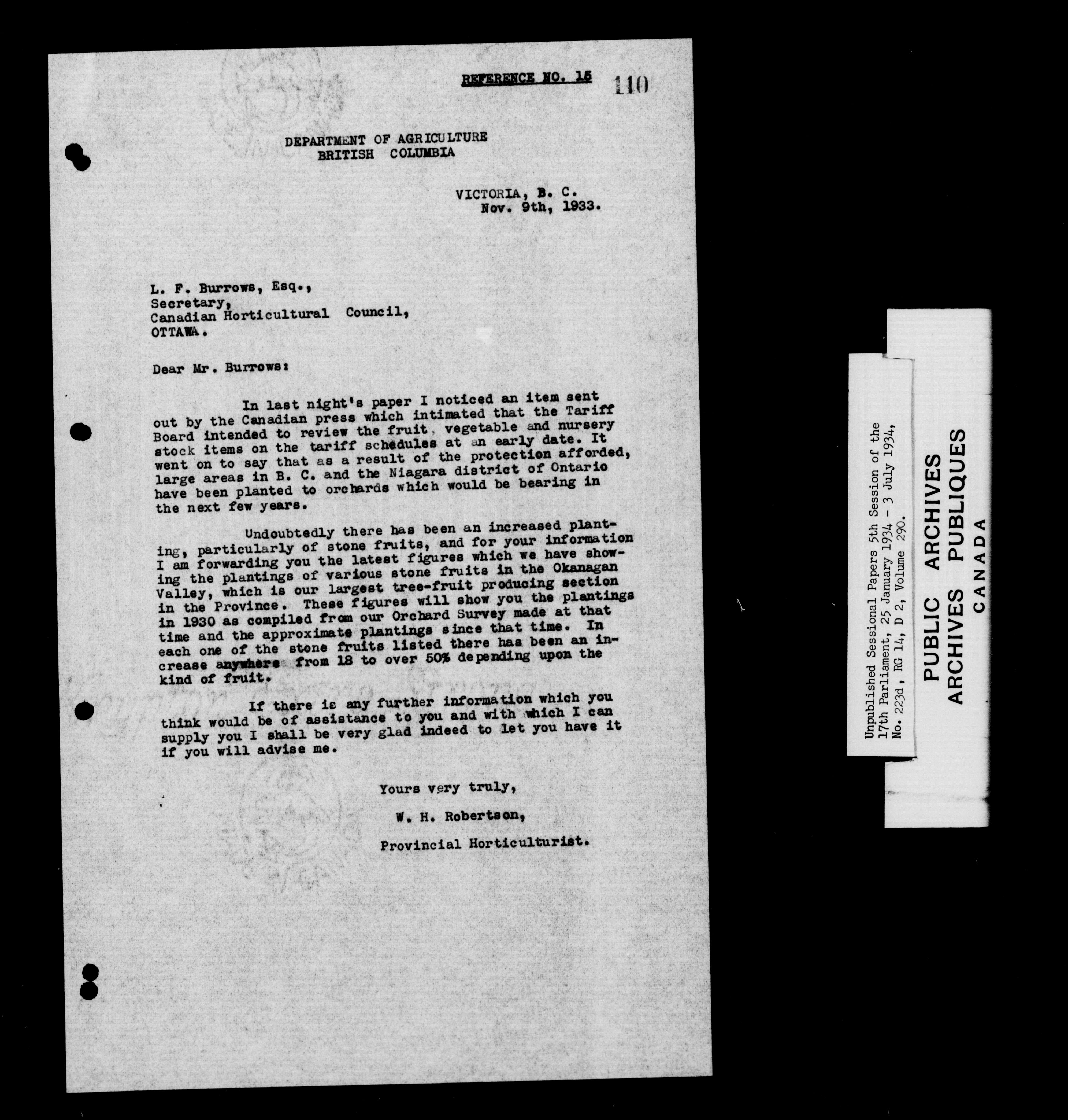 Unpublished sessional papers, 5th session of the 17th Parliament, 25 January - 3 July 1934 - 7612