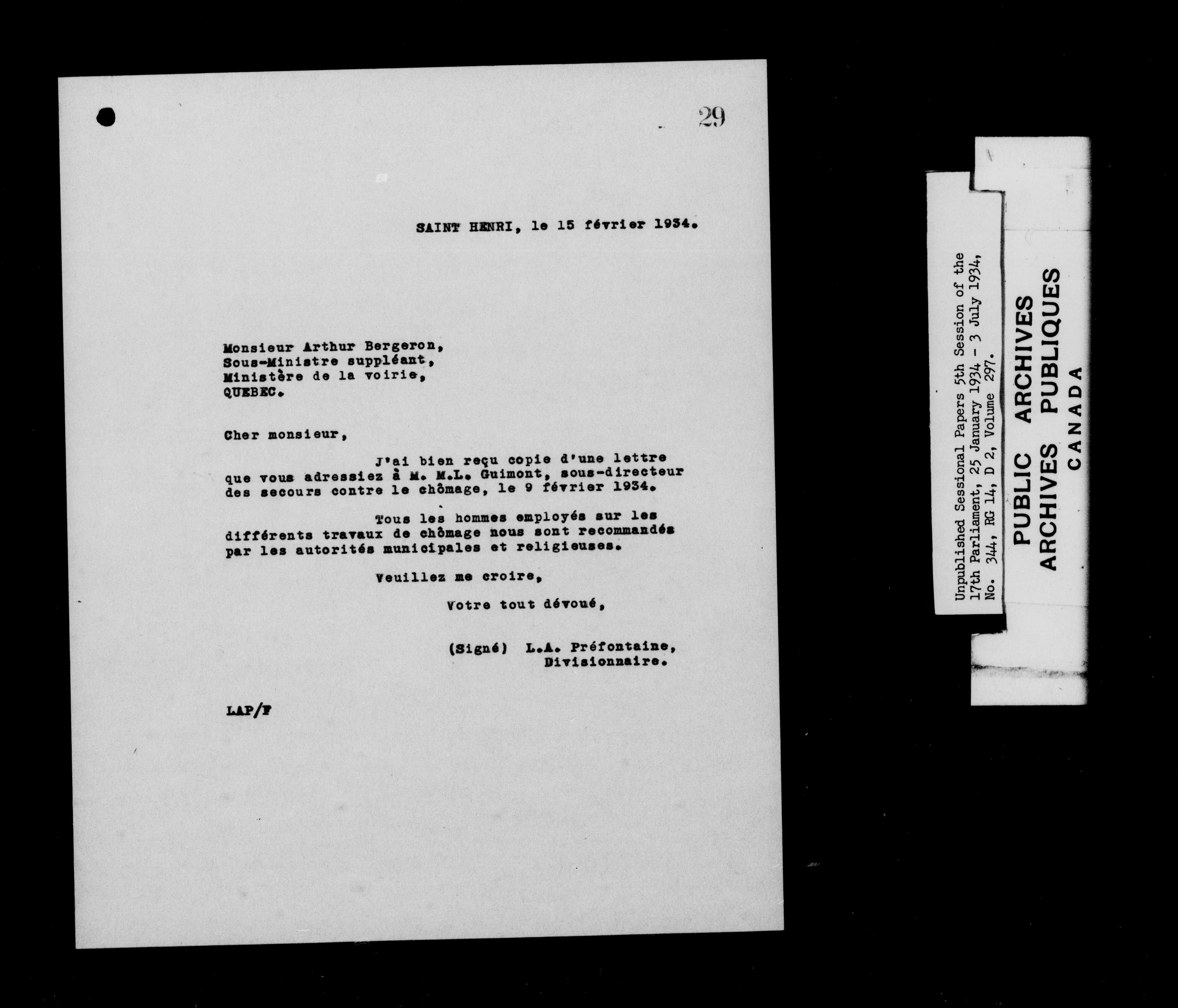 Unpublished sessional papers, 5th session of the 17th Parliament, 25 January - 3 July 1934 - 7617
