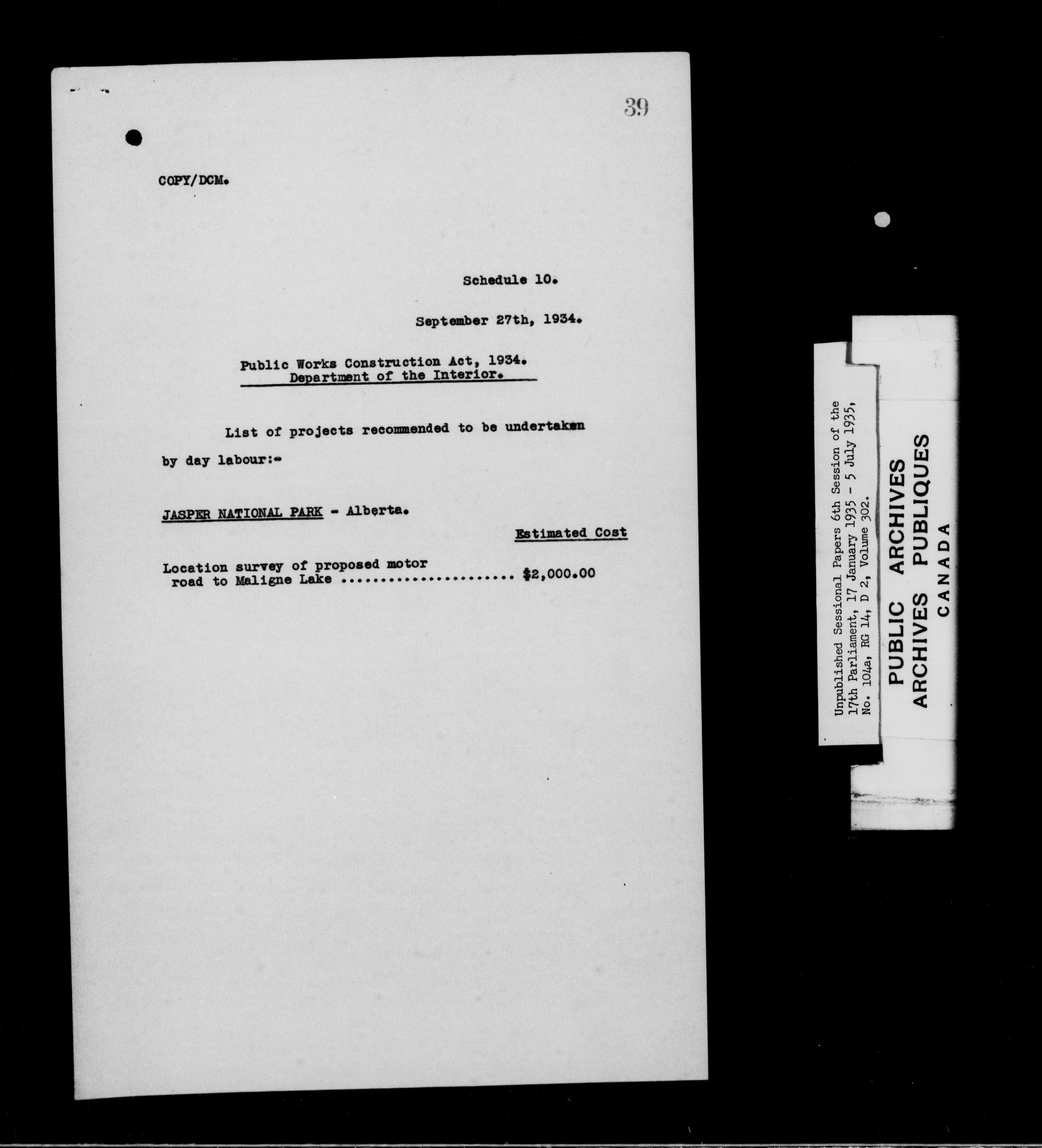 Unpublished sessional papers, 6th session of the 17th Parliament, 17th January - 5 July 1935 - 7618