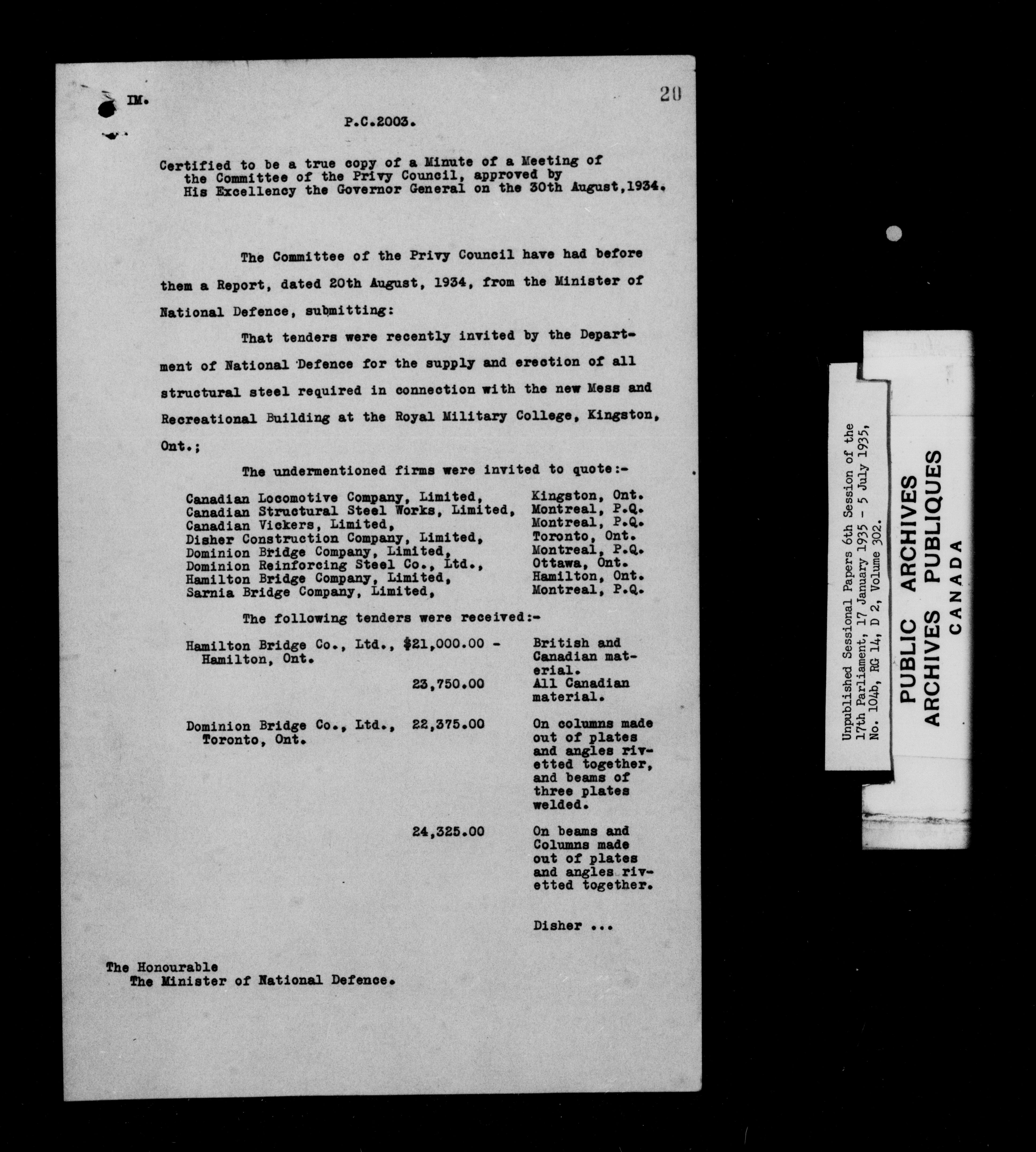 Unpublished sessional papers, 6th session of the 17th Parliament, 17th January - 5 July 1935 - 7618