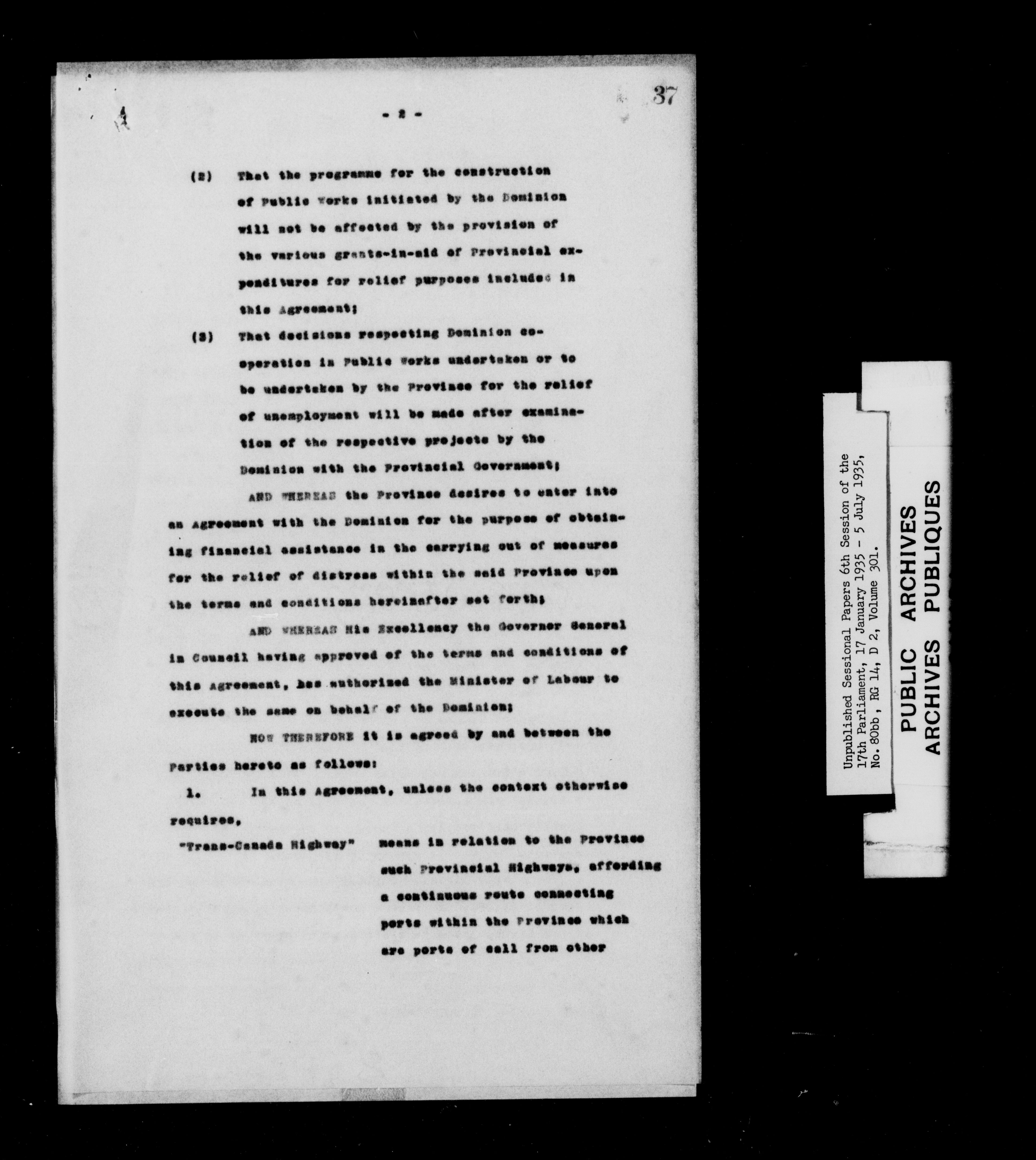 Unpublished sessional papers, 6th session of the 17th Parliament, 17th January - 5 July 1935 - 7618