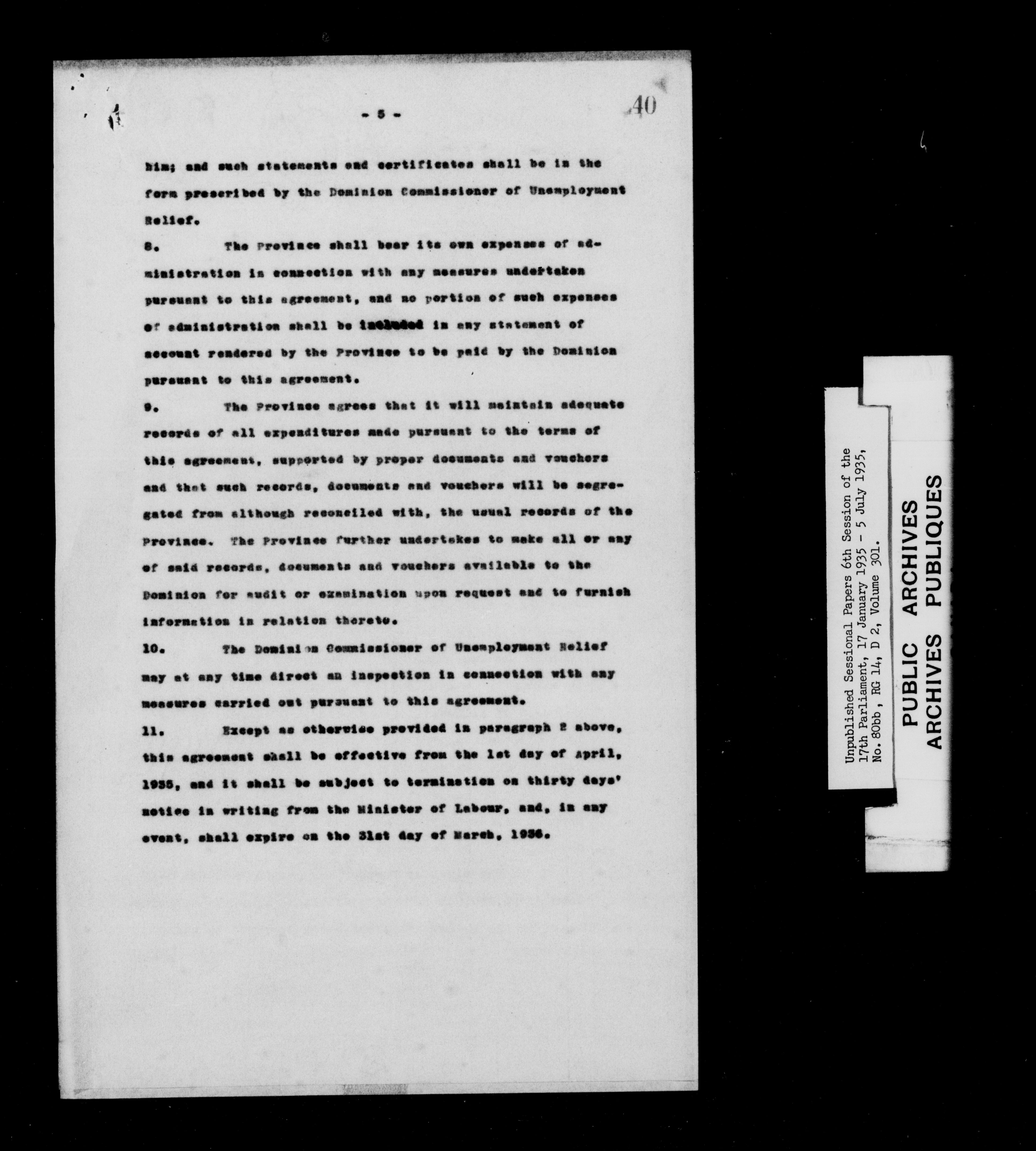 Unpublished sessional papers, 6th session of the 17th Parliament, 17th January - 5 July 1935 - 7618