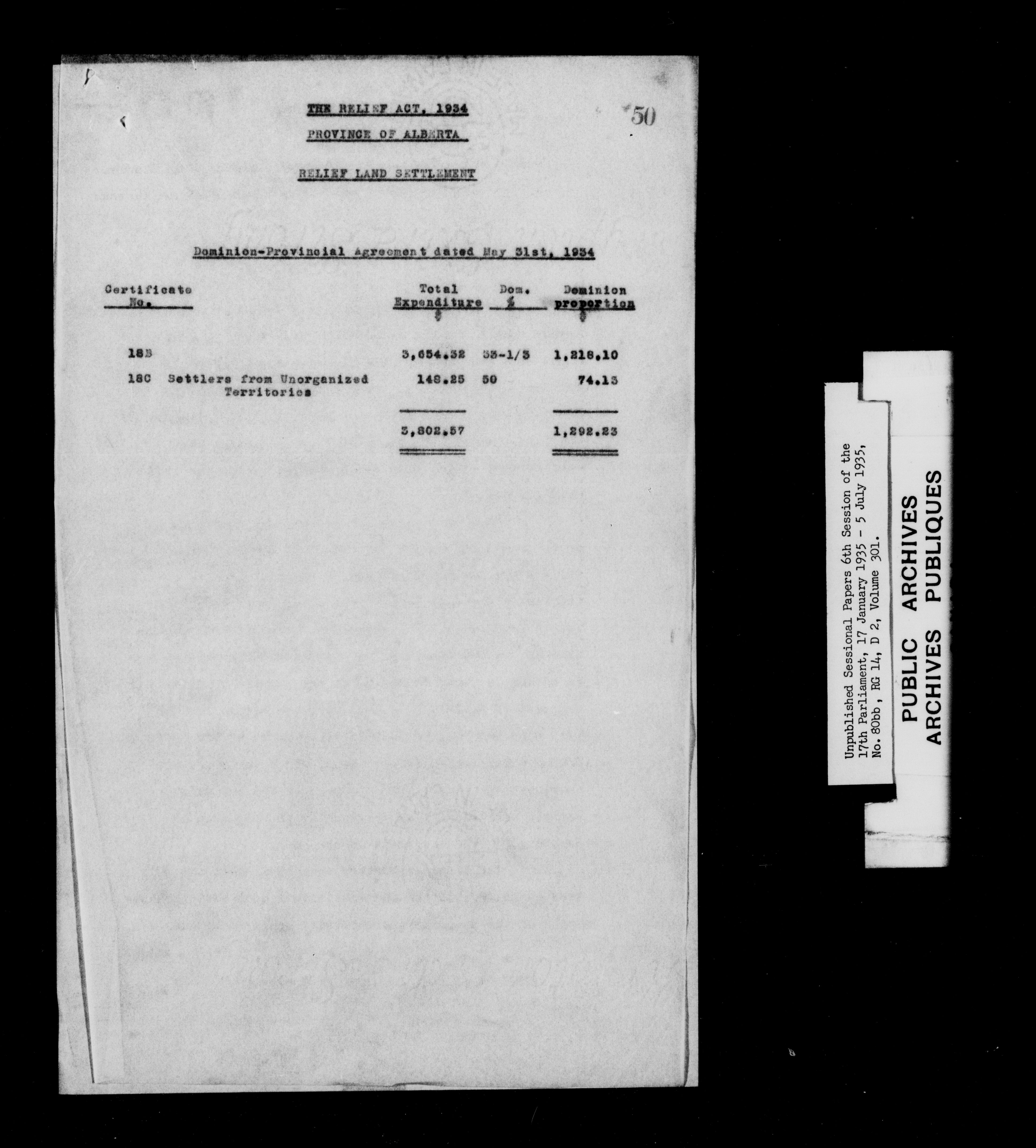 Unpublished sessional papers, 6th session of the 17th Parliament, 17th January - 5 July 1935 - 7618