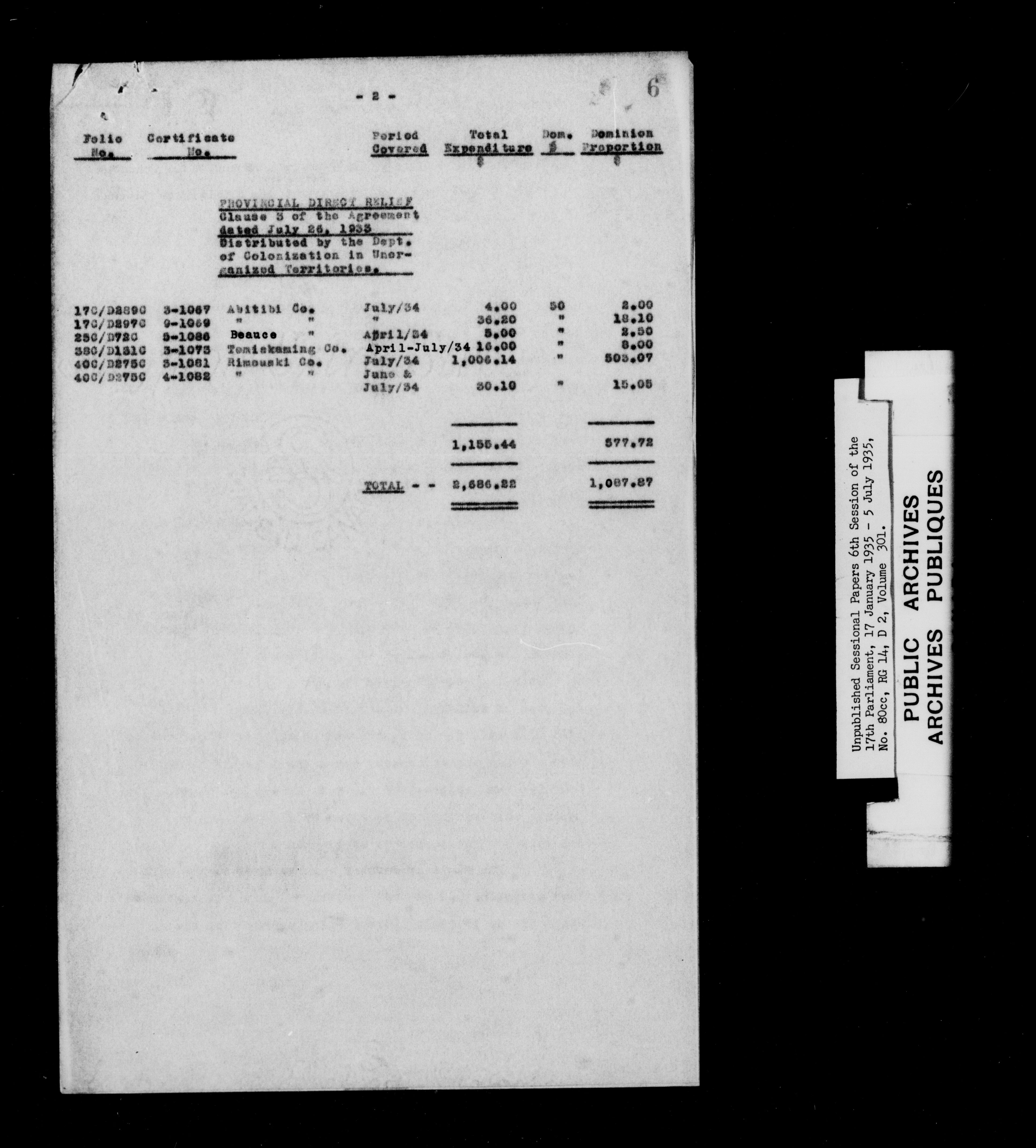 Unpublished sessional papers, 6th session of the 17th Parliament, 17th January - 5 July 1935 - 7618