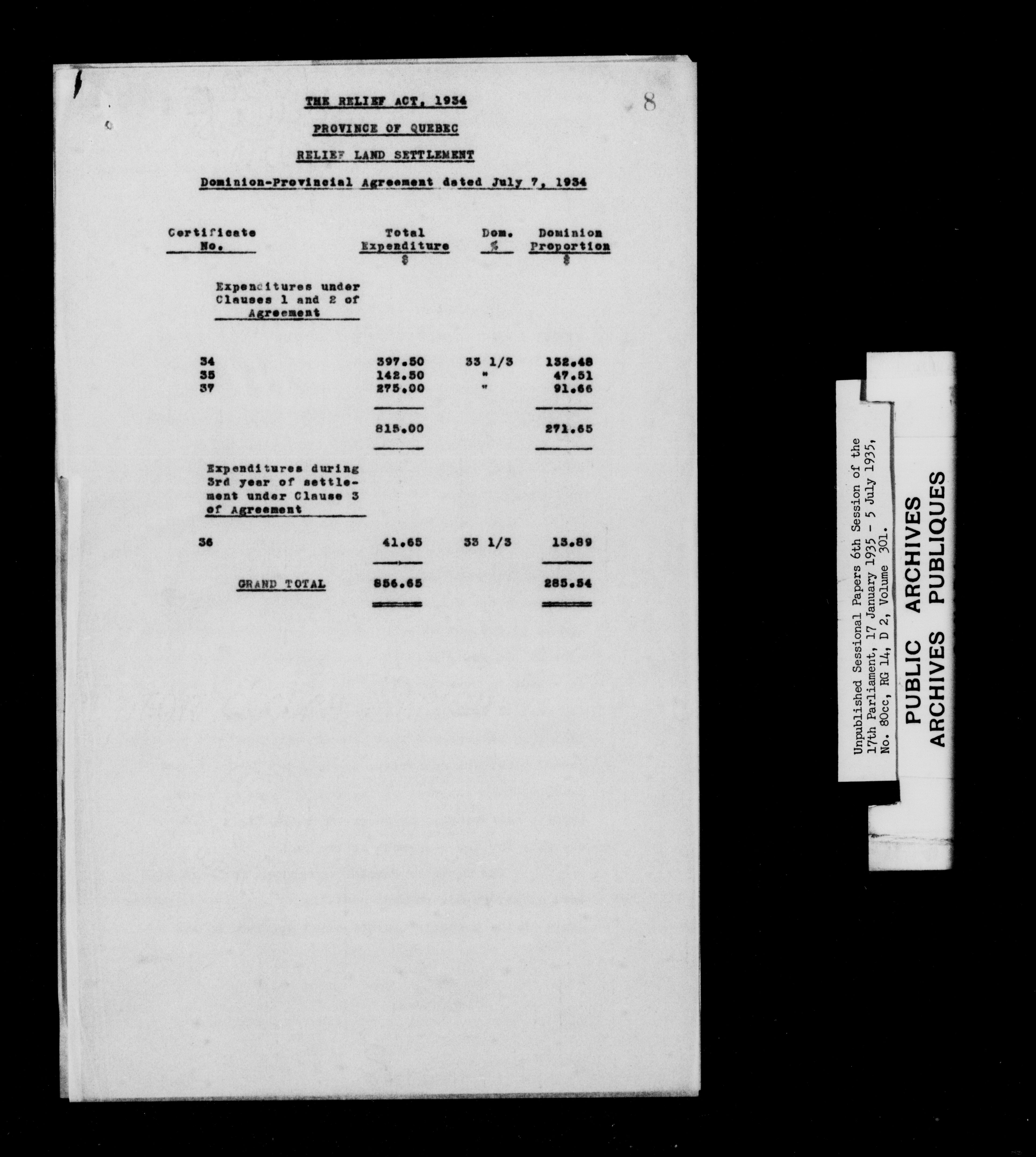 Unpublished sessional papers, 6th session of the 17th Parliament, 17th January - 5 July 1935 - 7618