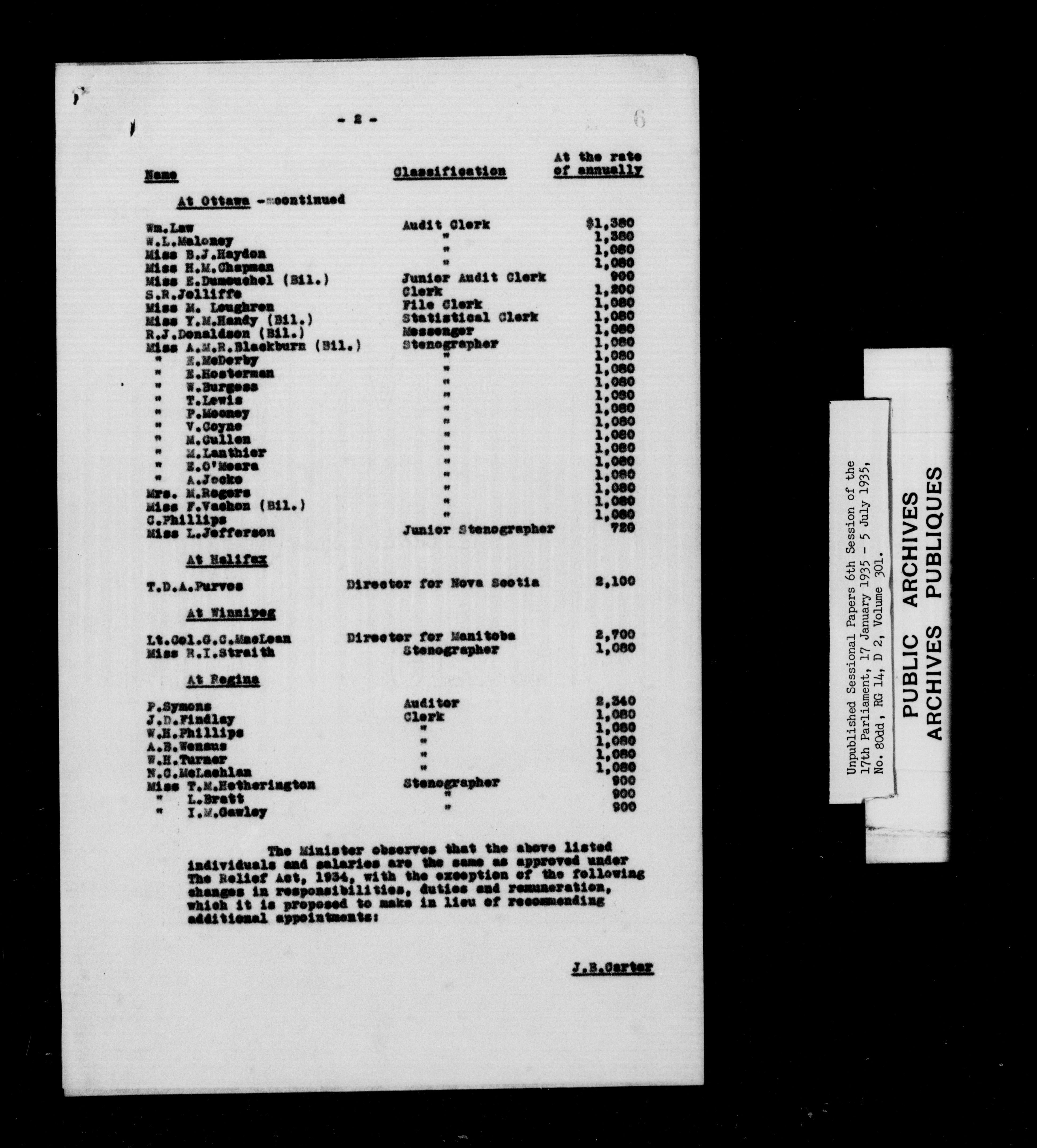 Unpublished sessional papers, 6th session of the 17th Parliament, 17th January - 5 July 1935 - 7618