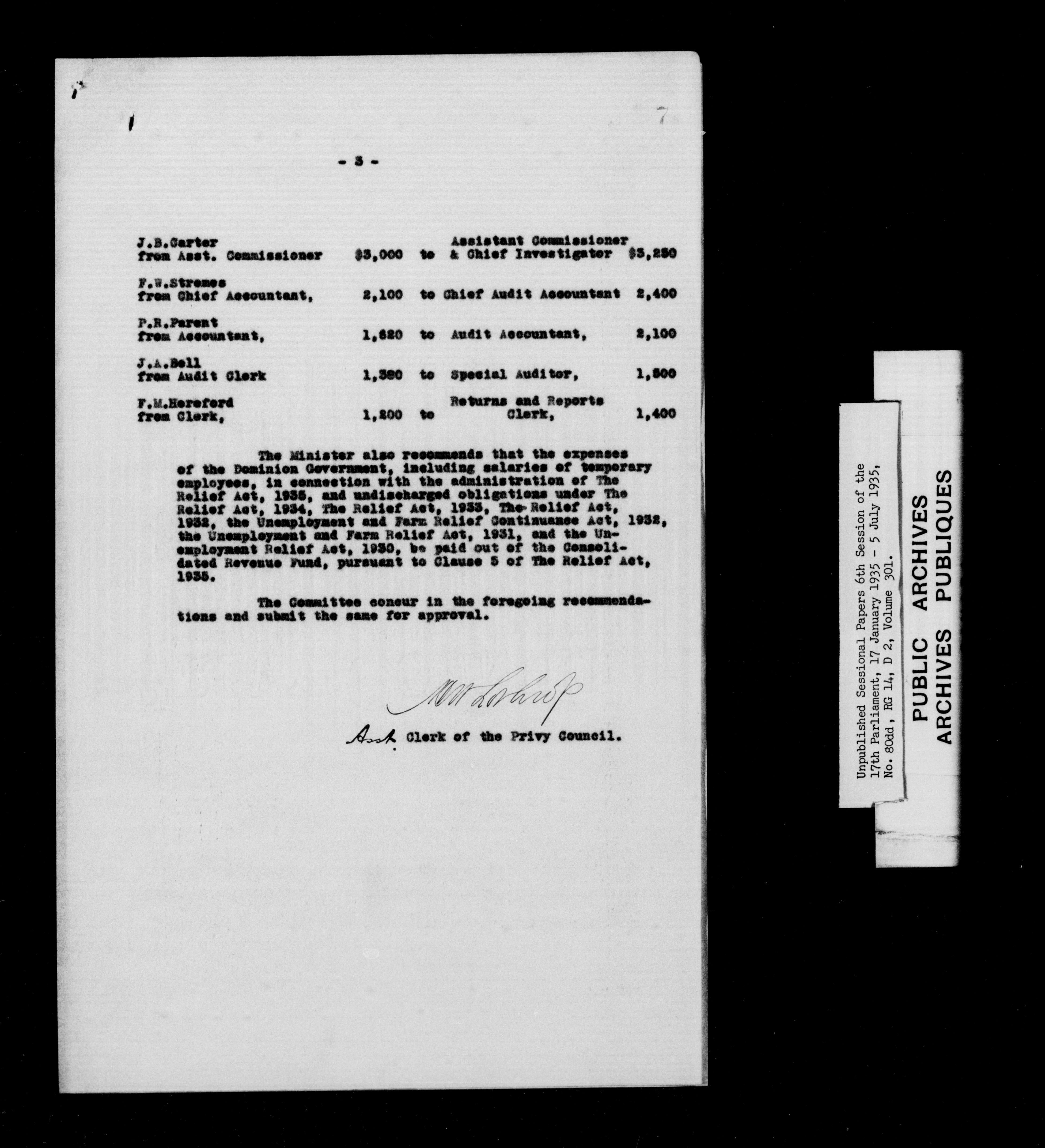 Unpublished sessional papers, 6th session of the 17th Parliament, 17th January - 5 July 1935 - 7618