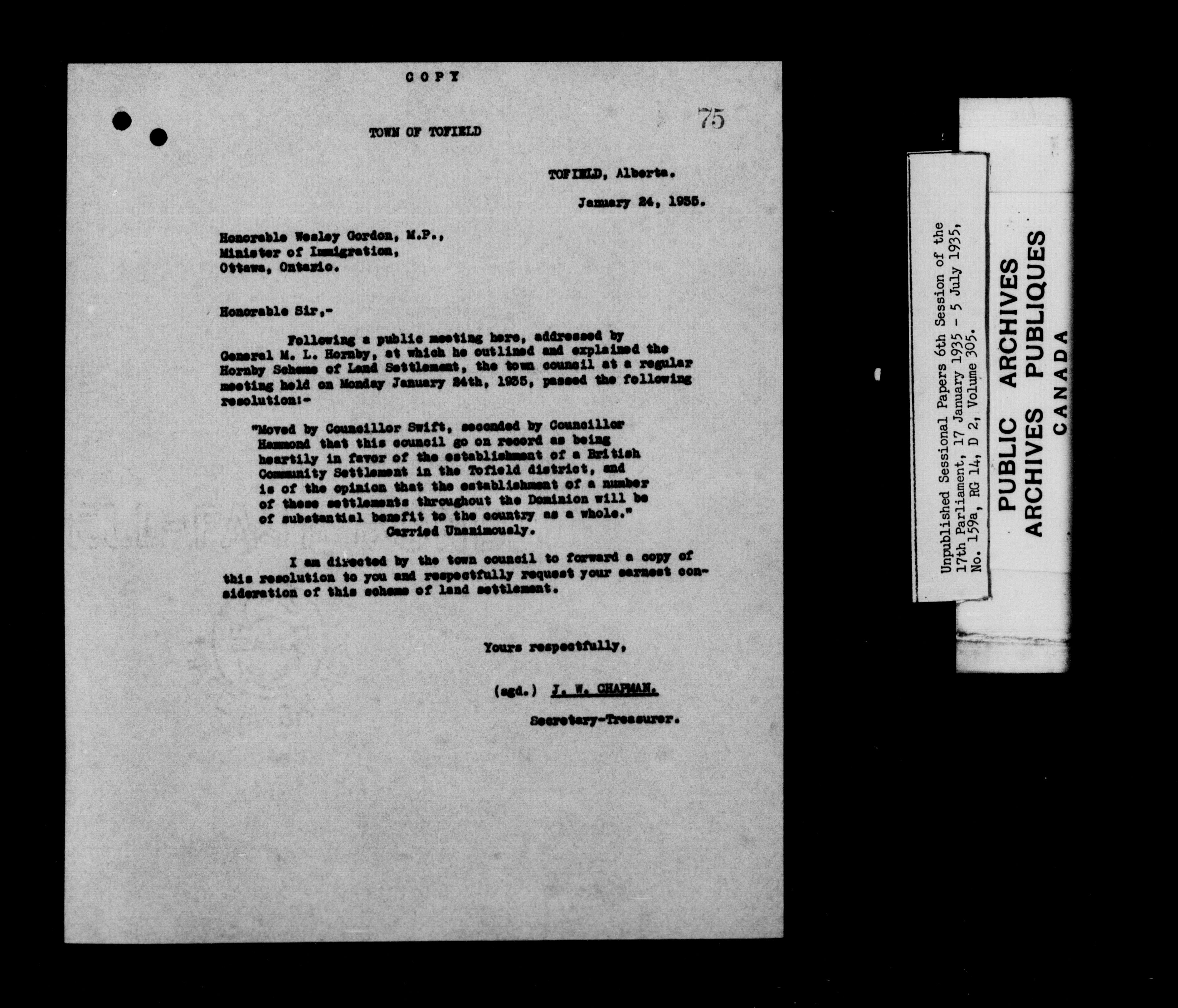 Unpublished sessional papers, 6th session of the 17th Parliament, 17th January - 5 July 1935 - 7620