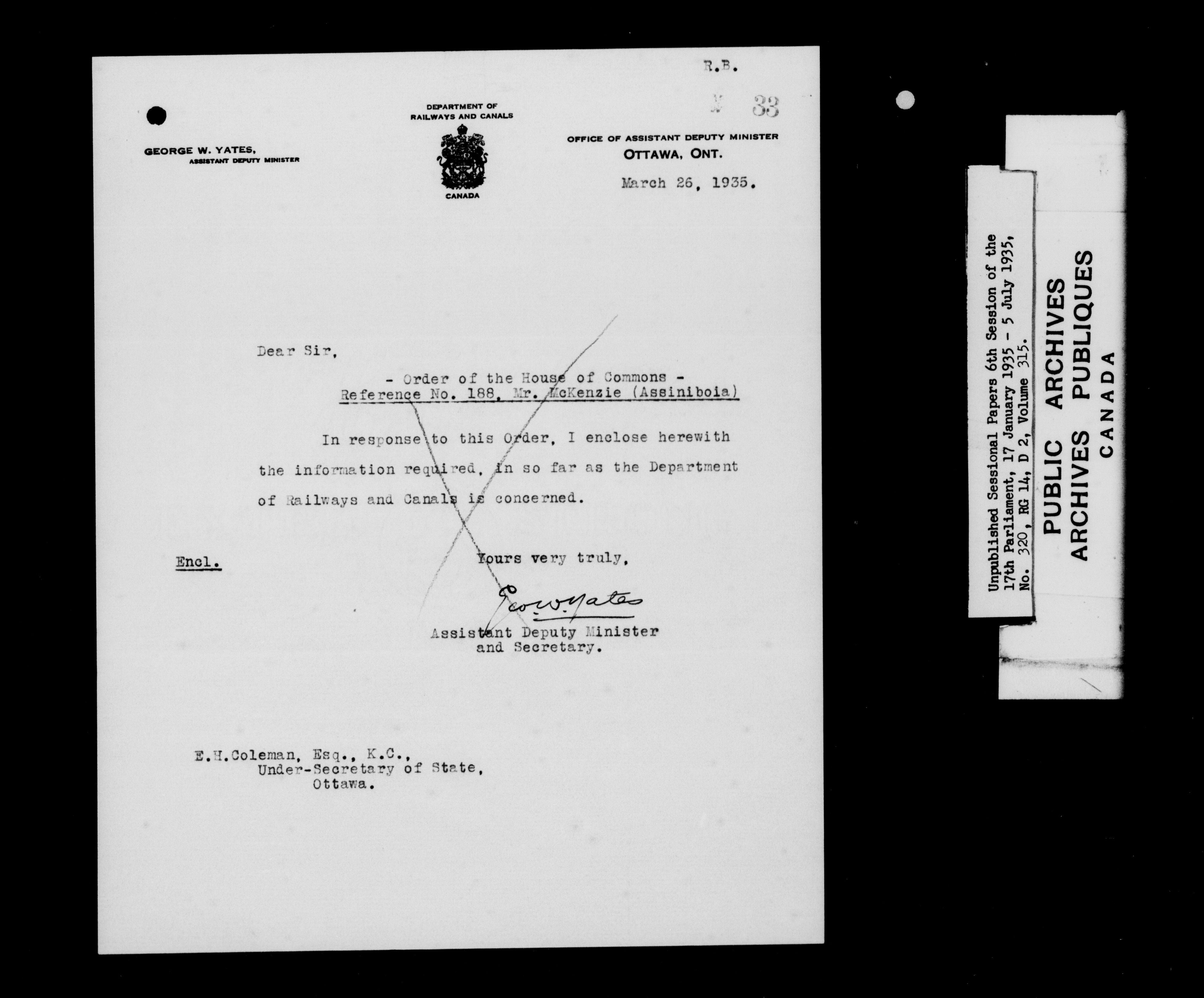 Unpublished sessional papers, 6th session of the 17th Parliament, 17th January - 5 July 1935 - 7627