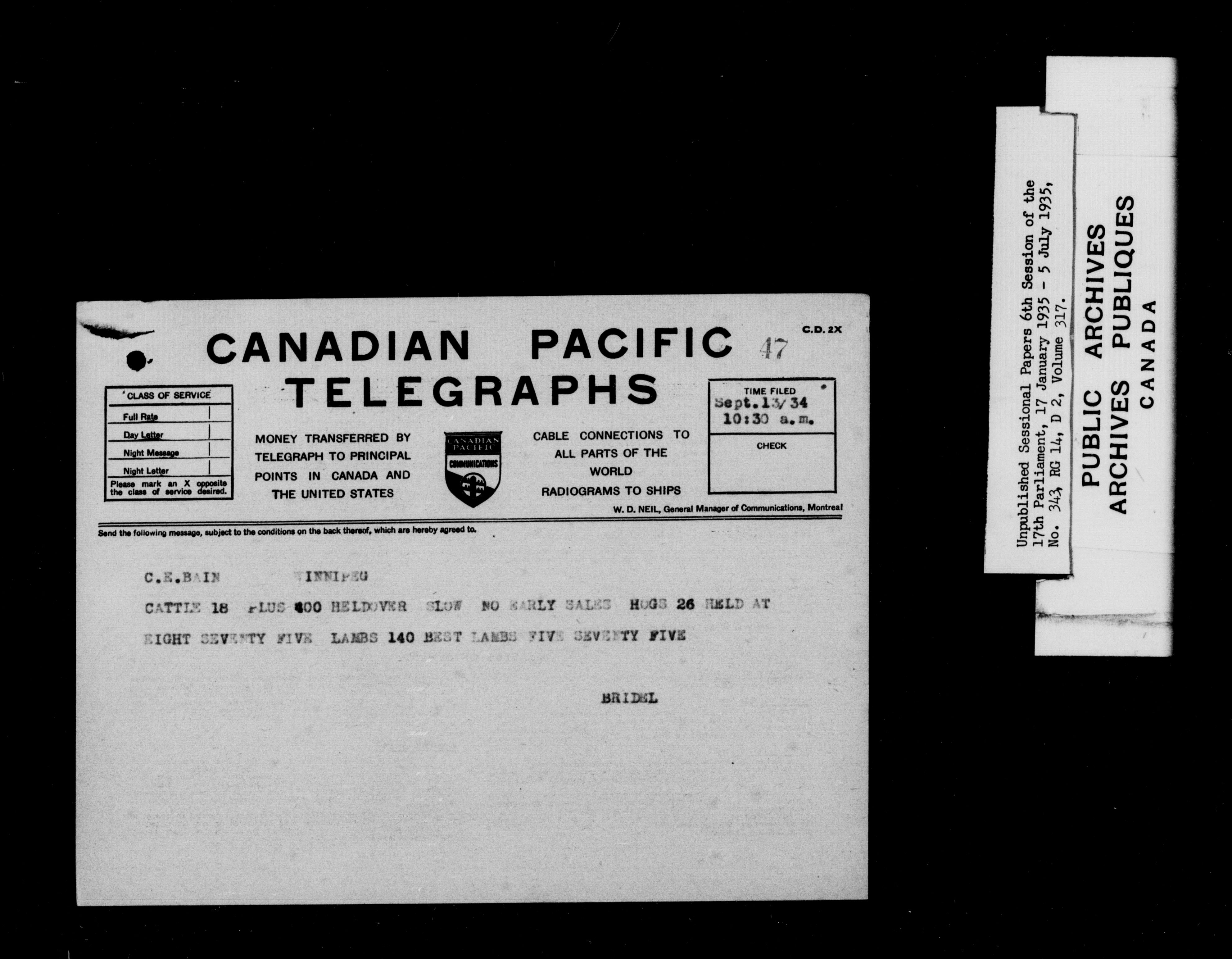 Unpublished sessional papers, 6th session of the 17th Parliament, 17th January - 5 July 1935 - 7629