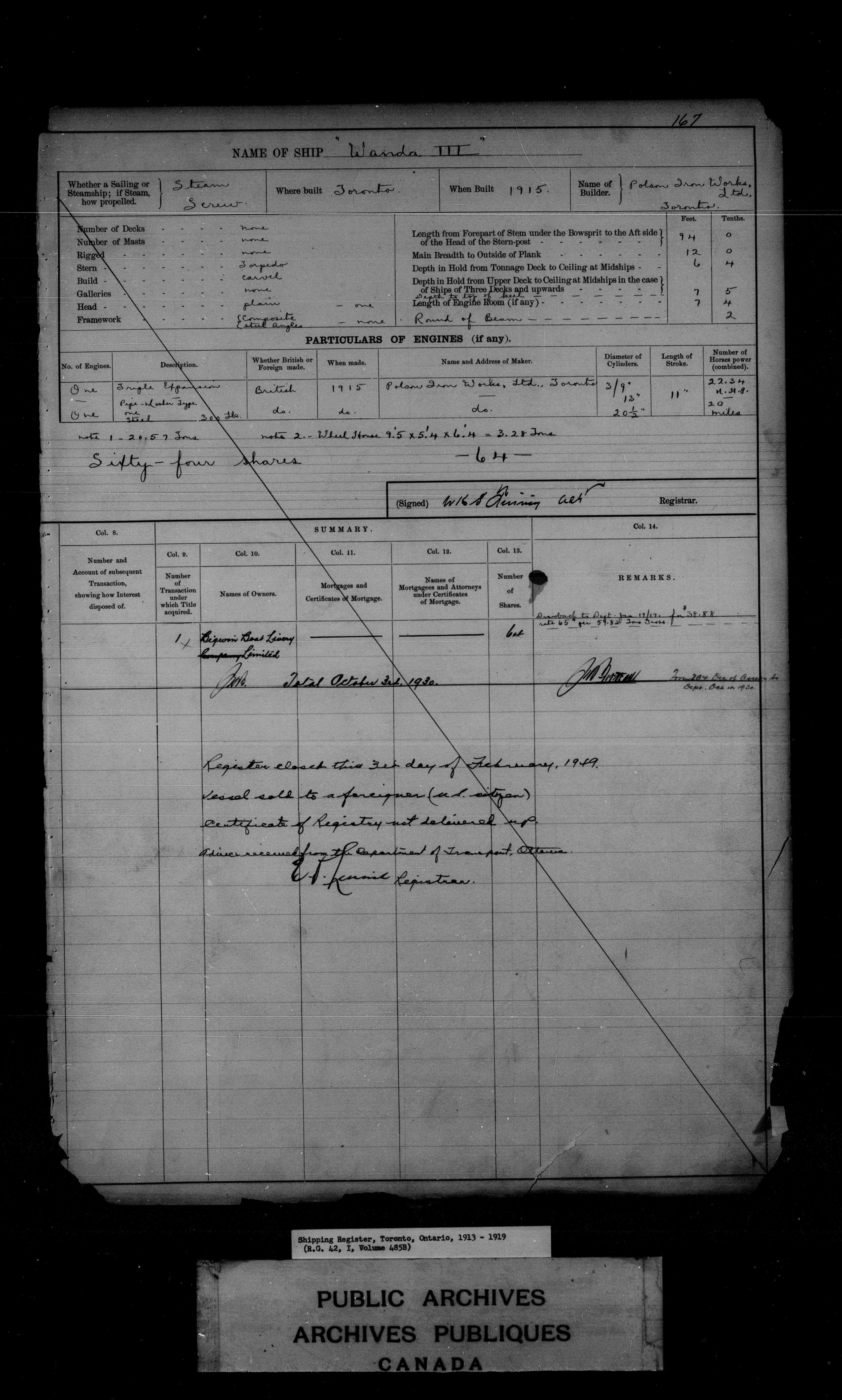 Toronto [Ontario] Registrar of Shipping - 7635