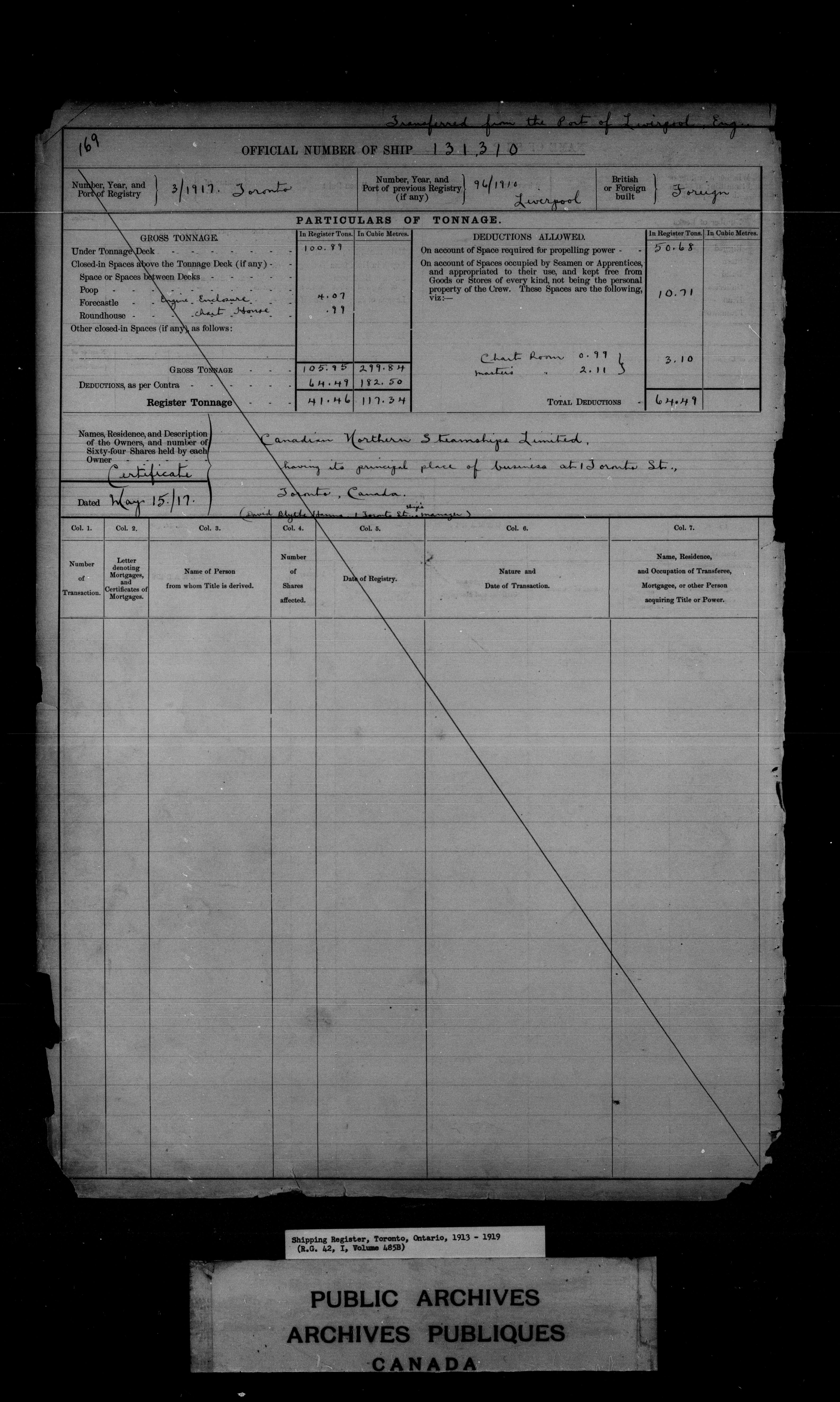 Toronto [Ontario] Registrar of Shipping - 7635