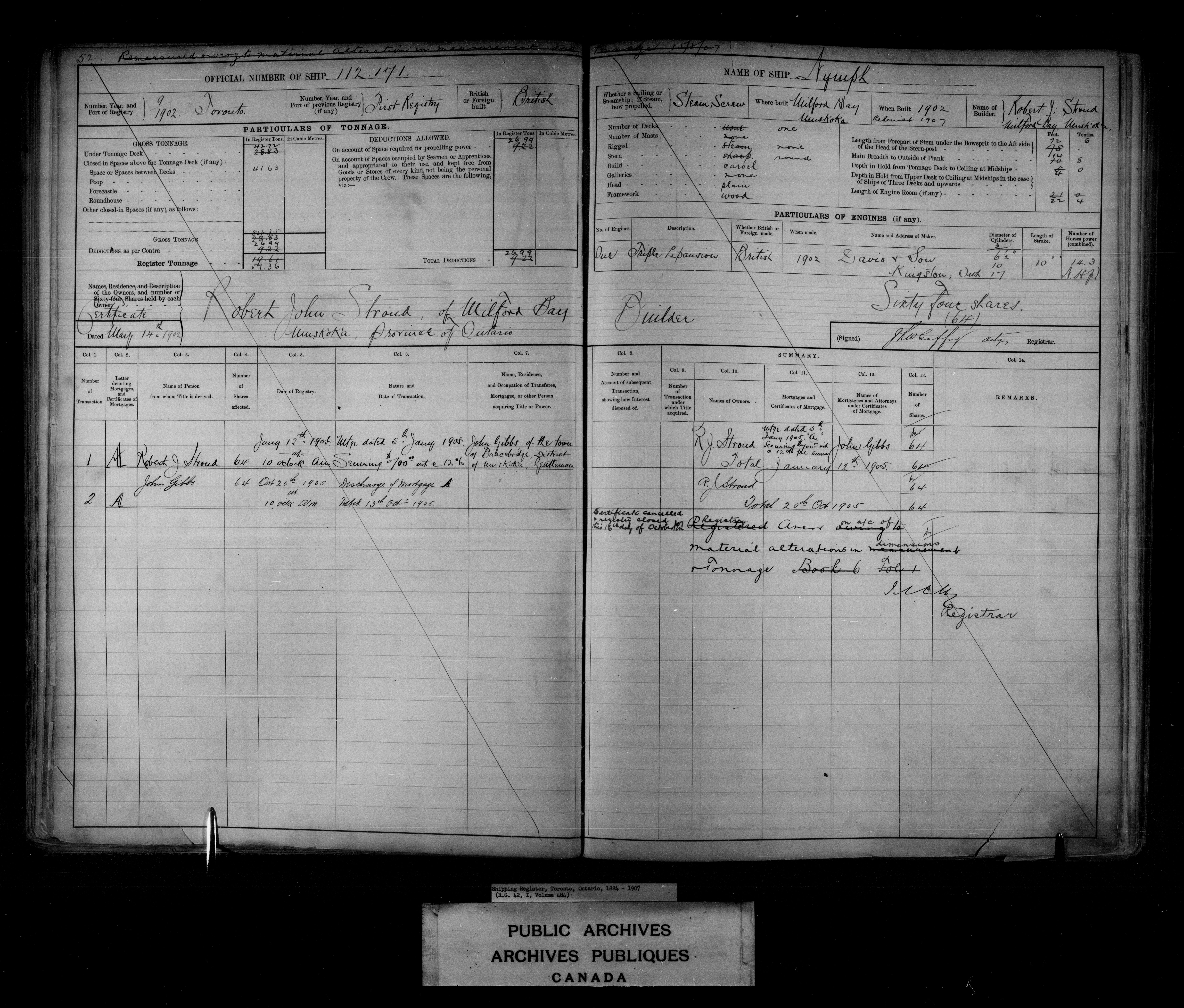 Toronto [Ontario] Registrar of Shipping - 7635
