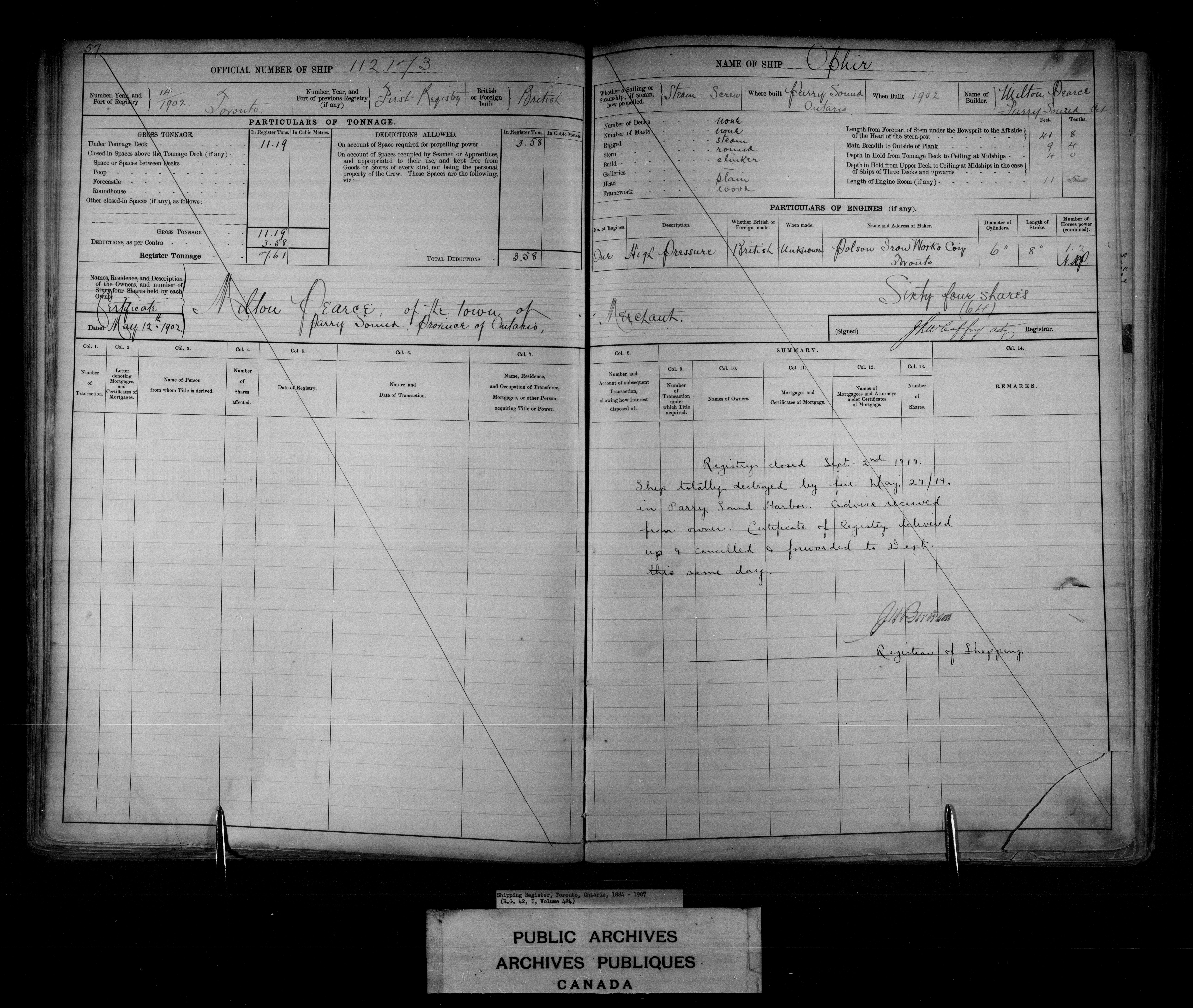 Toronto [Ontario] Registrar of Shipping - 7635