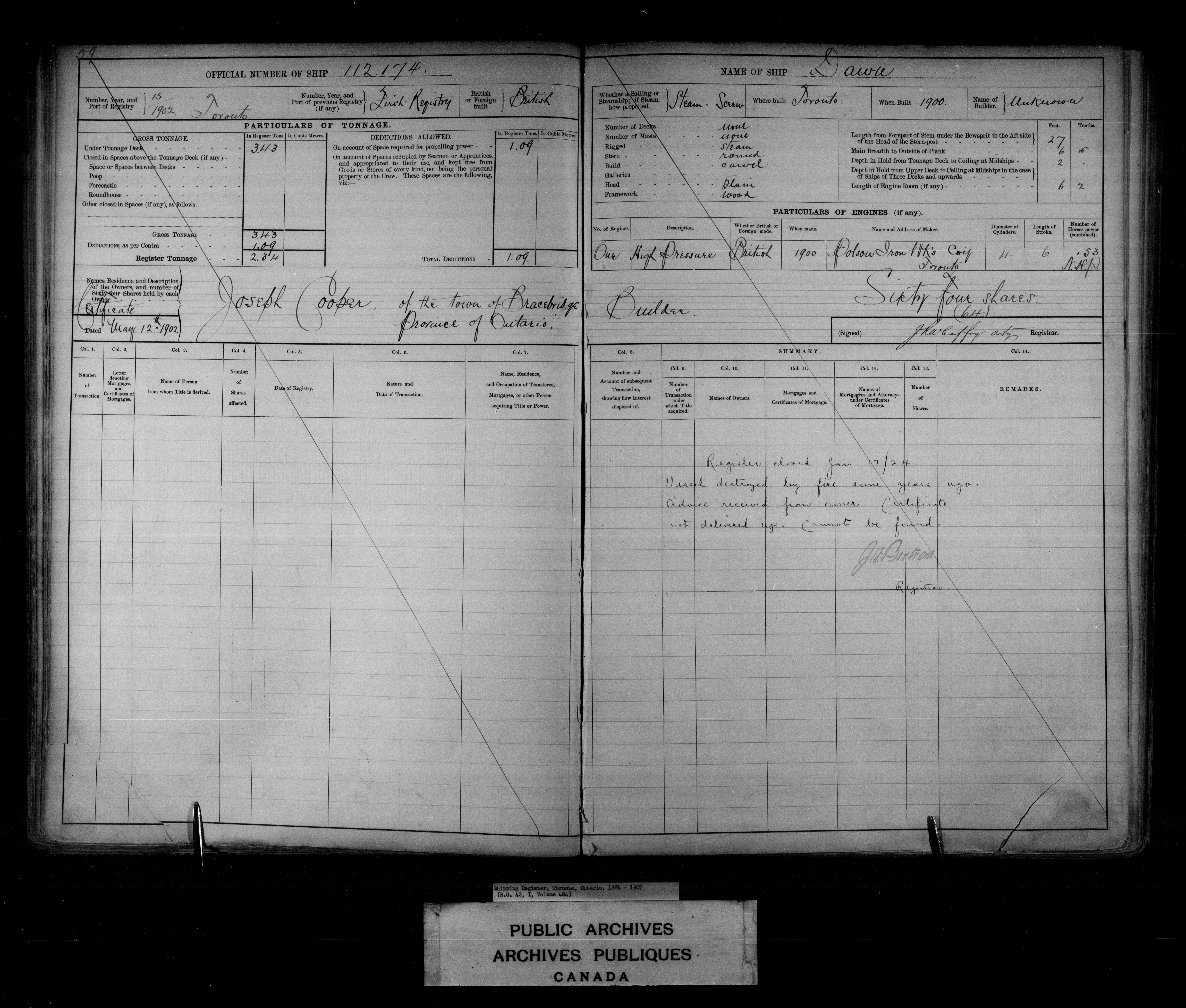 Toronto [Ontario] Registrar of Shipping - 7635