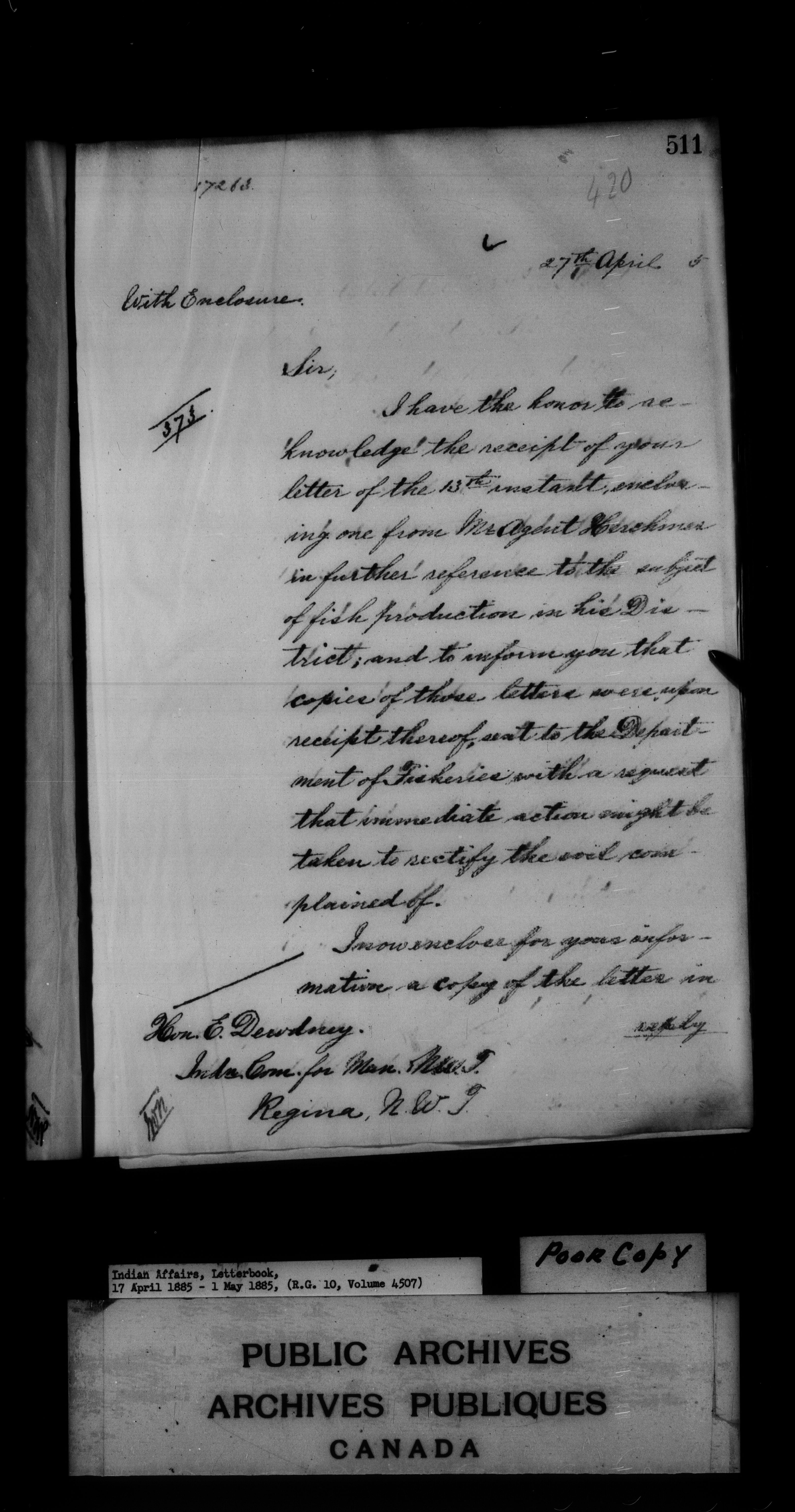 Department of Indian Affairs : Letterbooks of out-going correspondence relating to the administration of Indian Affairs in both eastern and western Canada, 1871-1920 - 7638