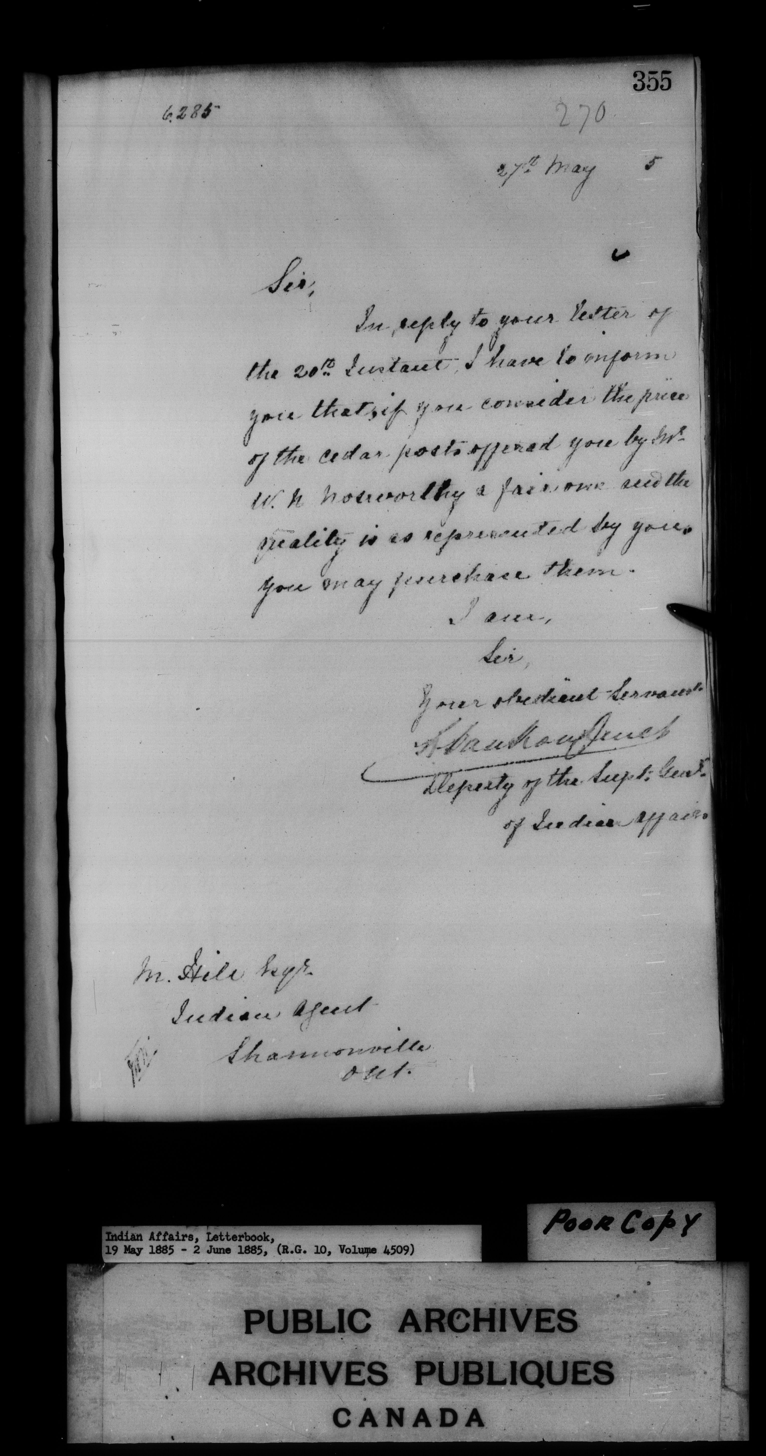 Department of Indian Affairs : Letterbooks of out-going correspondence relating to the administration of Indian Affairs in both eastern and western Canada, 1871-1920 - 7639