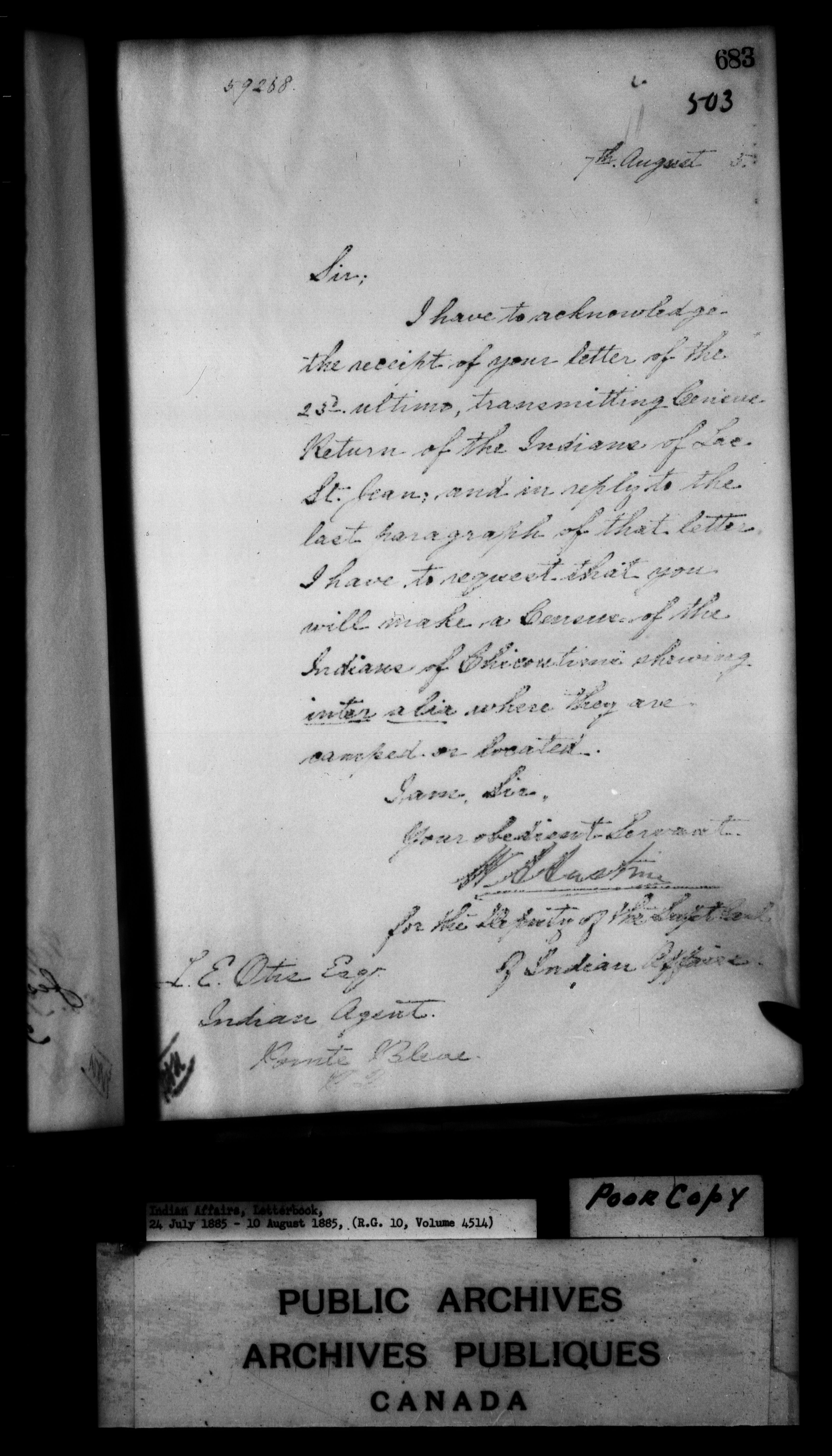 Department of Indian Affairs : Letterbooks of out-going correspondence relating to the administration of Indian Affairs in both eastern and western Canada, 1871-1920 - 7641