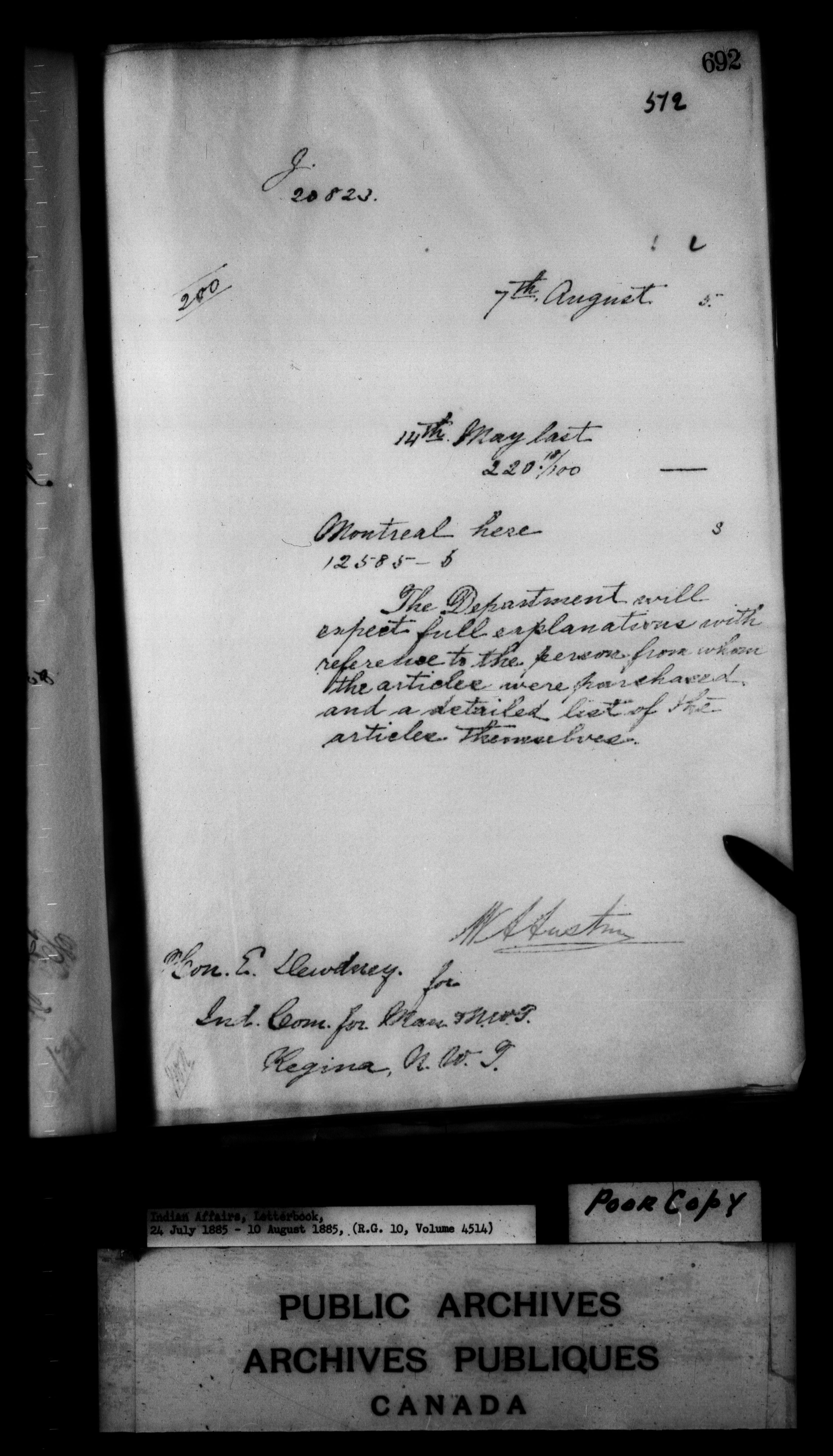 Department of Indian Affairs : Letterbooks of out-going correspondence relating to the administration of Indian Affairs in both eastern and western Canada, 1871-1920 - 7641