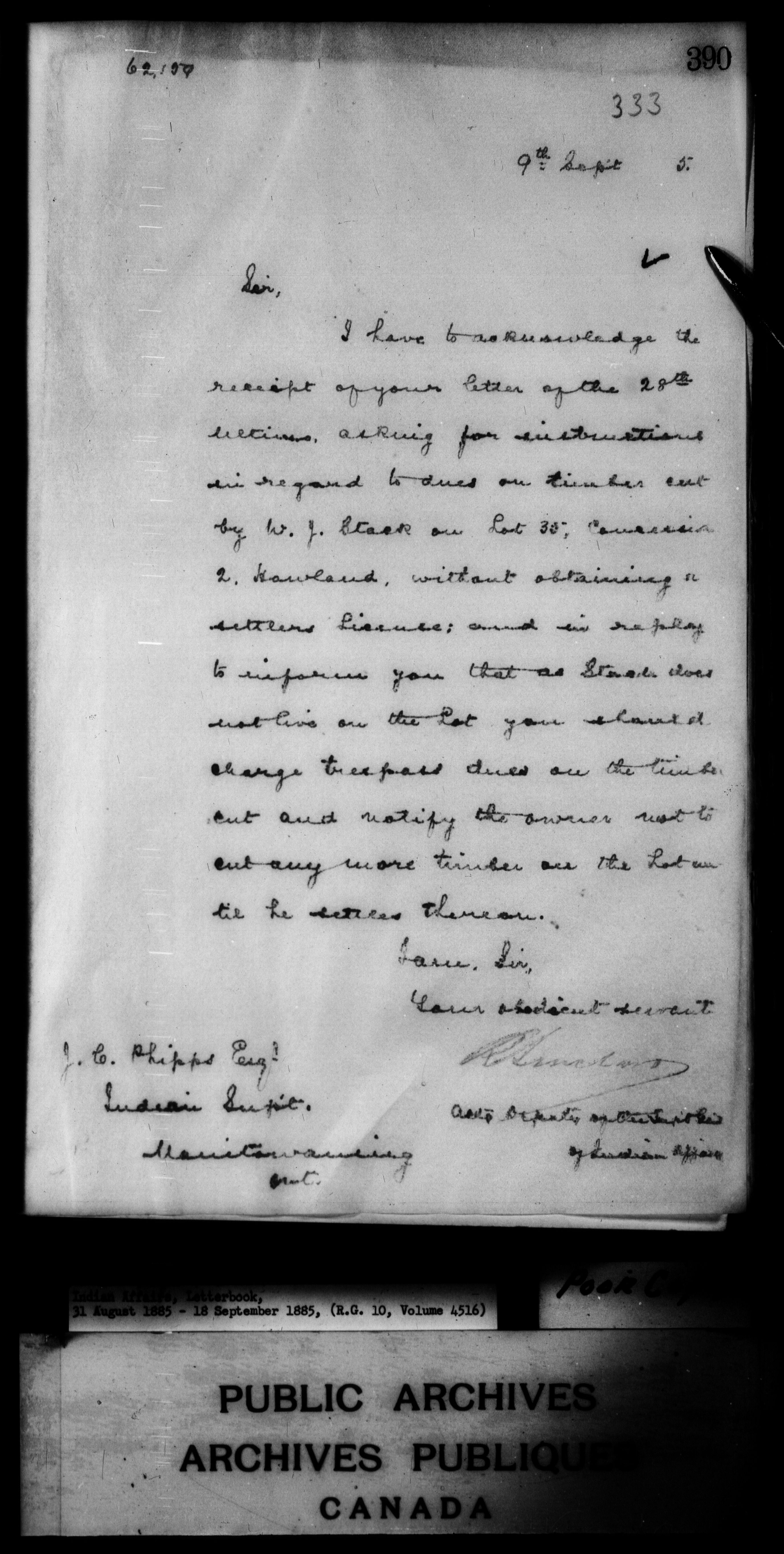 Department of Indian Affairs : Letterbooks of out-going correspondence relating to the administration of Indian Affairs in both eastern and western Canada, 1871-1920 - 7642