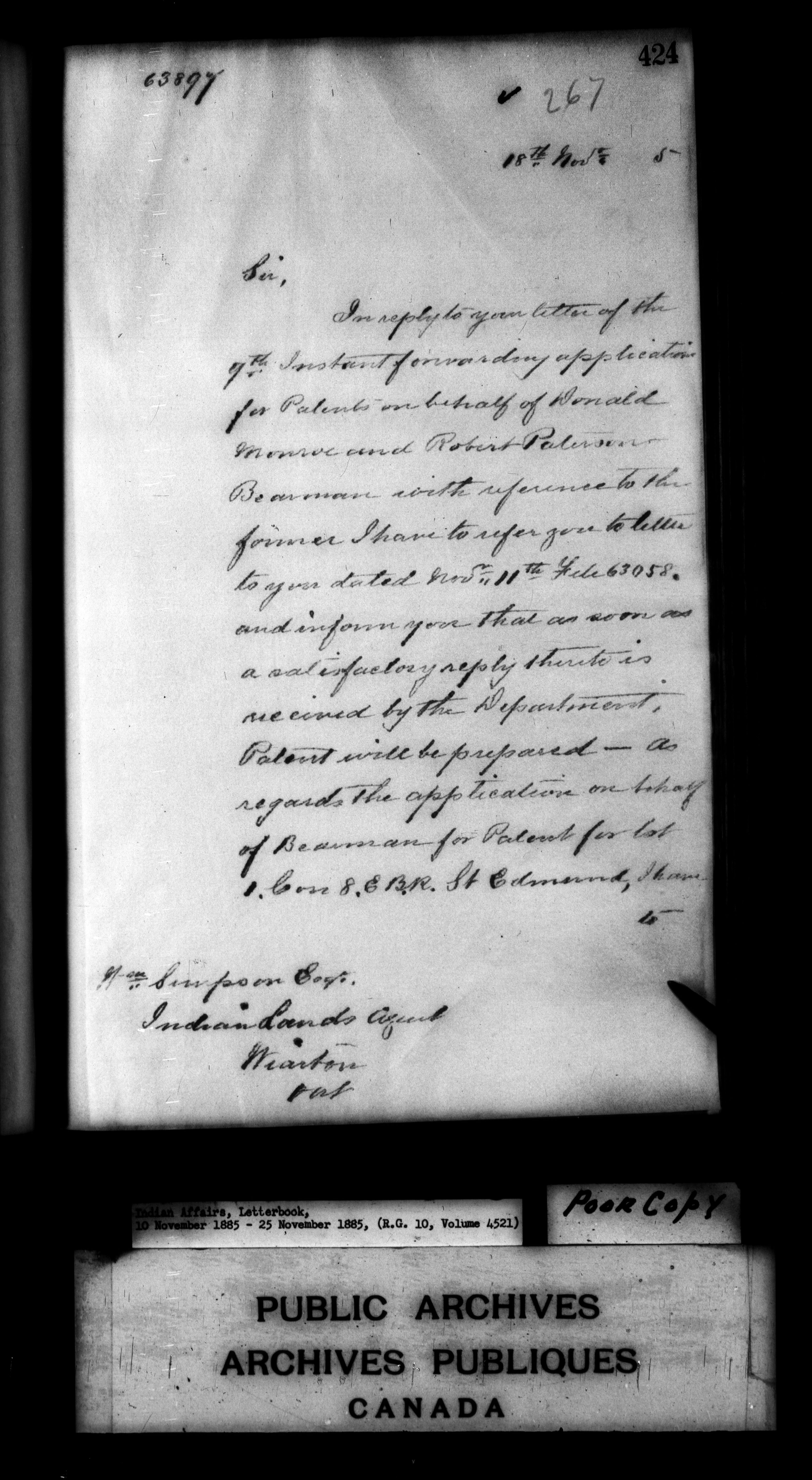 Department of Indian Affairs : Letterbooks of out-going correspondence relating to the administration of Indian Affairs in both eastern and western Canada, 1871-1920 - 7645