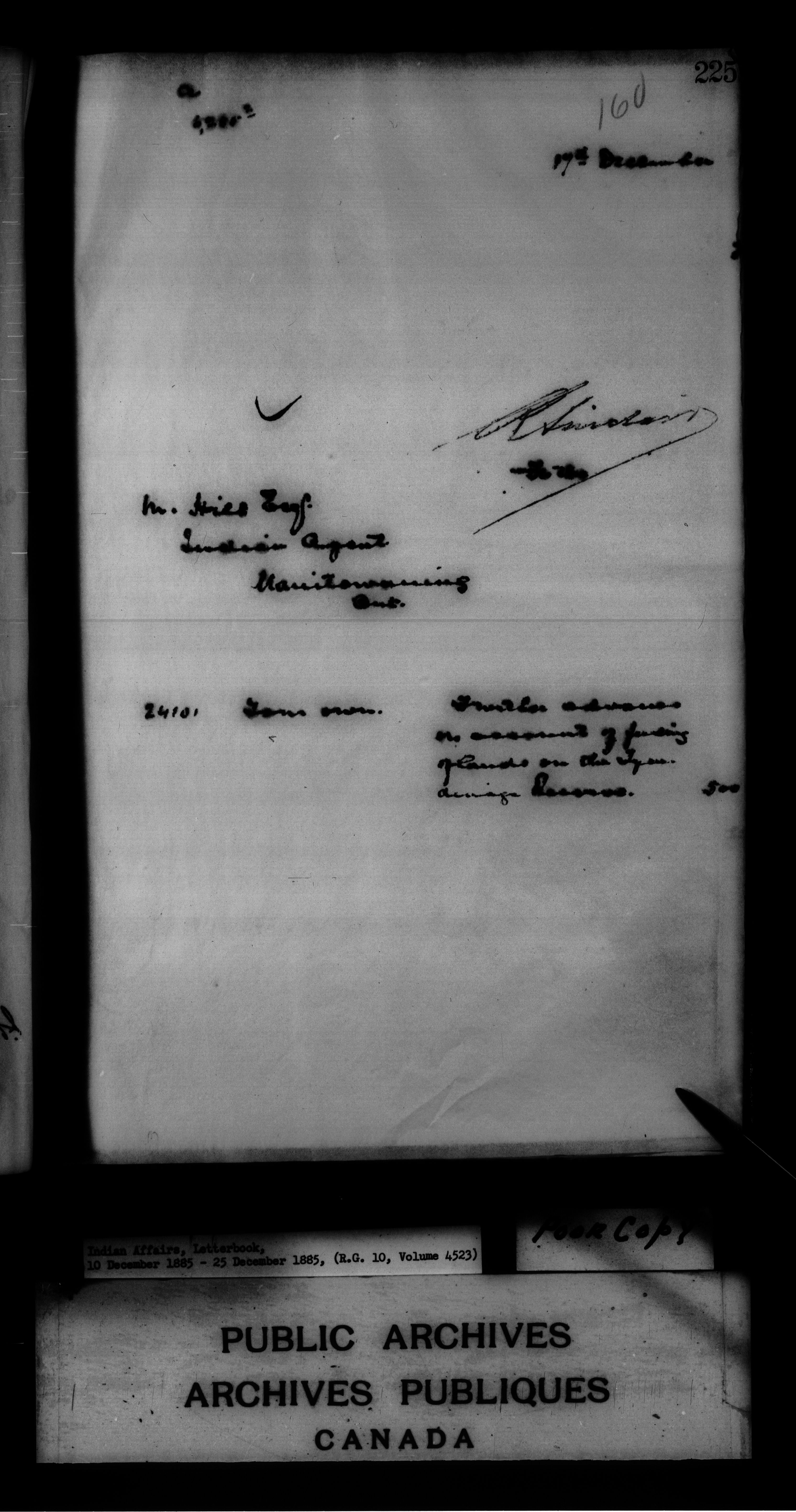 Department of Indian Affairs : Letterbooks of out-going correspondence relating to the administration of Indian Affairs in both eastern and western Canada, 1871-1920 - 7646