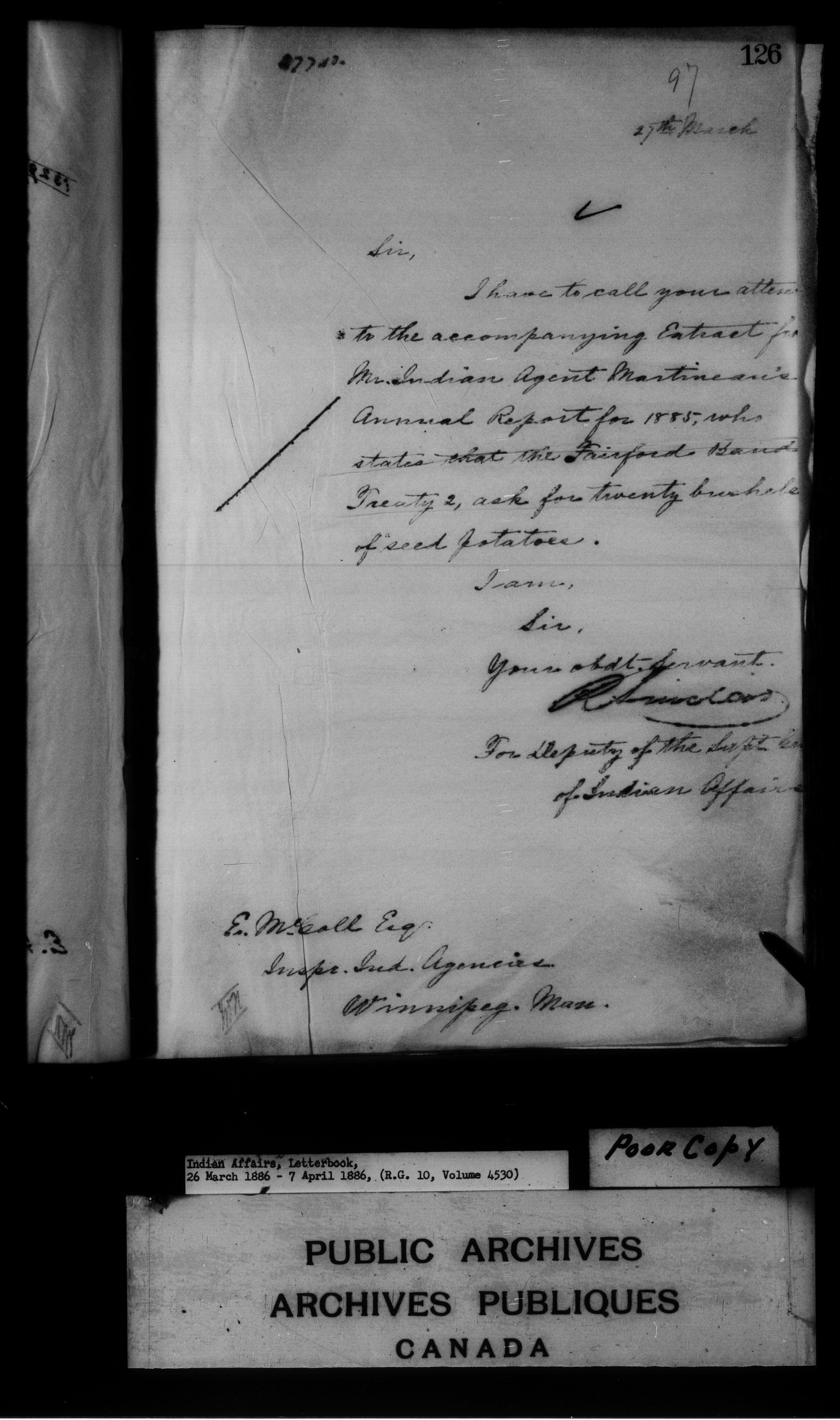 Department of Indian Affairs : Letterbooks of out-going correspondence relating to the administration of Indian Affairs in both eastern and western Canada, 1871-1920 - 7650