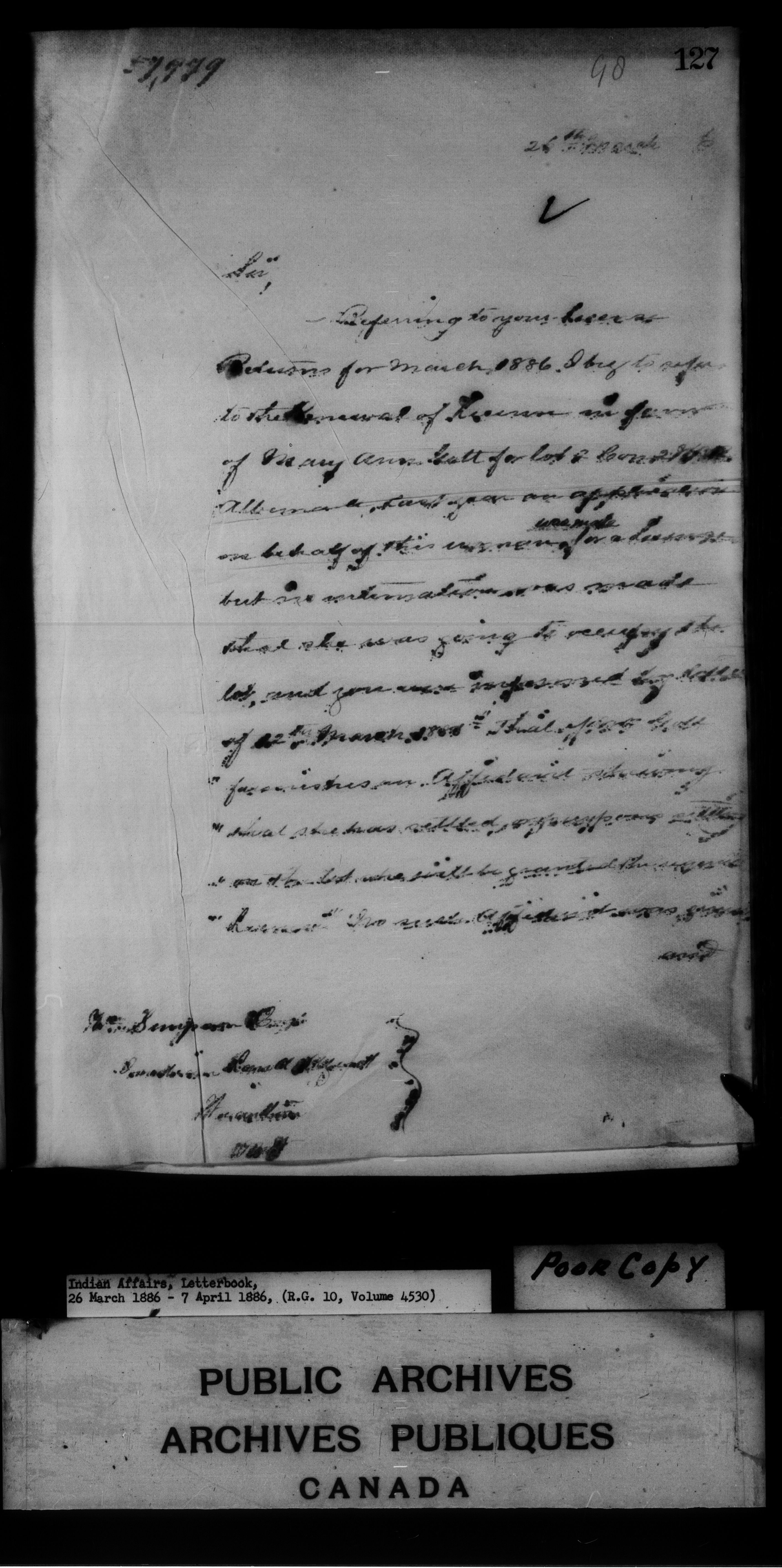 Department of Indian Affairs : Letterbooks of out-going correspondence relating to the administration of Indian Affairs in both eastern and western Canada, 1871-1920 - 7650