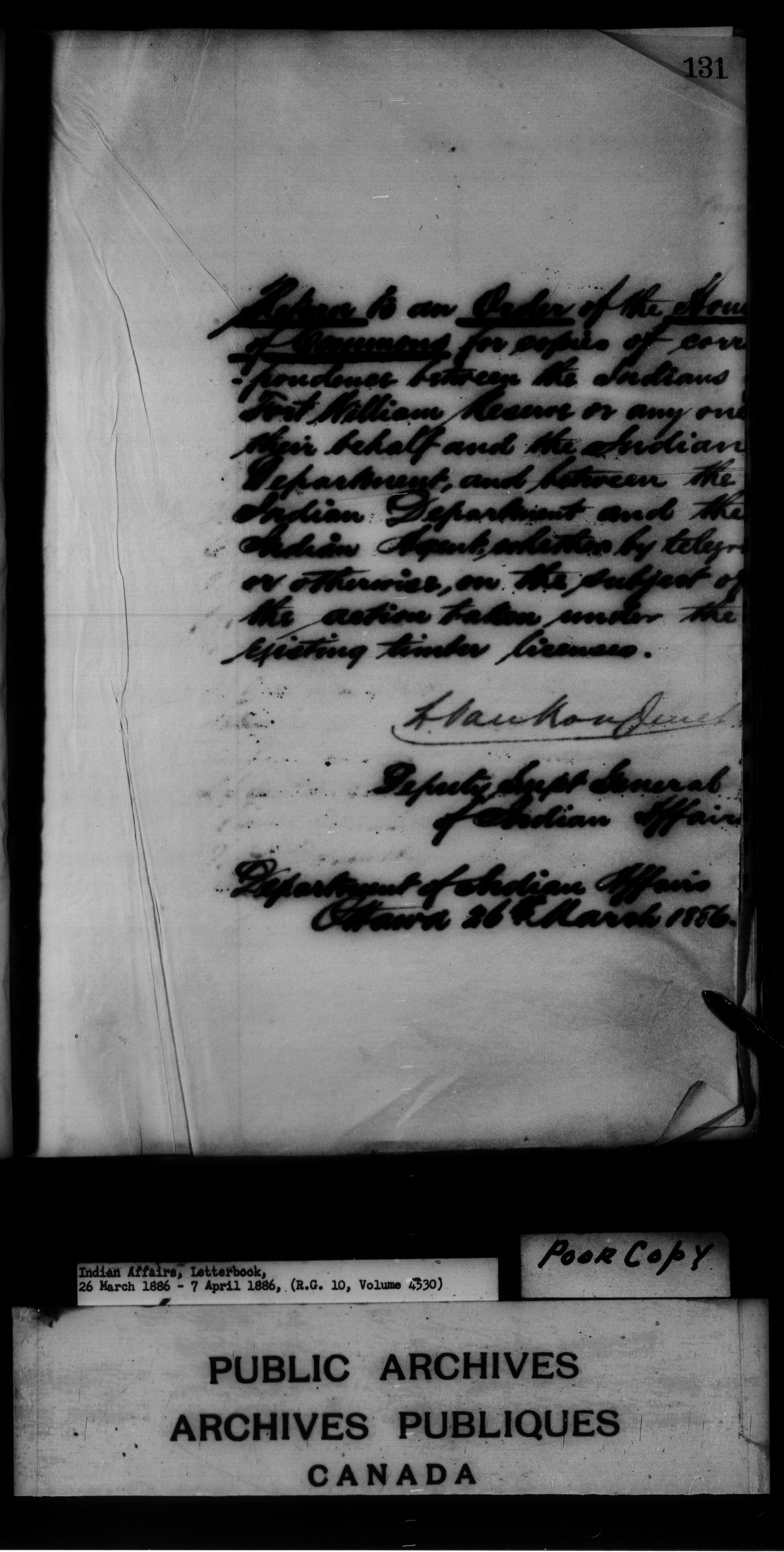 Department of Indian Affairs : Letterbooks of out-going correspondence relating to the administration of Indian Affairs in both eastern and western Canada, 1871-1920 - 7650
