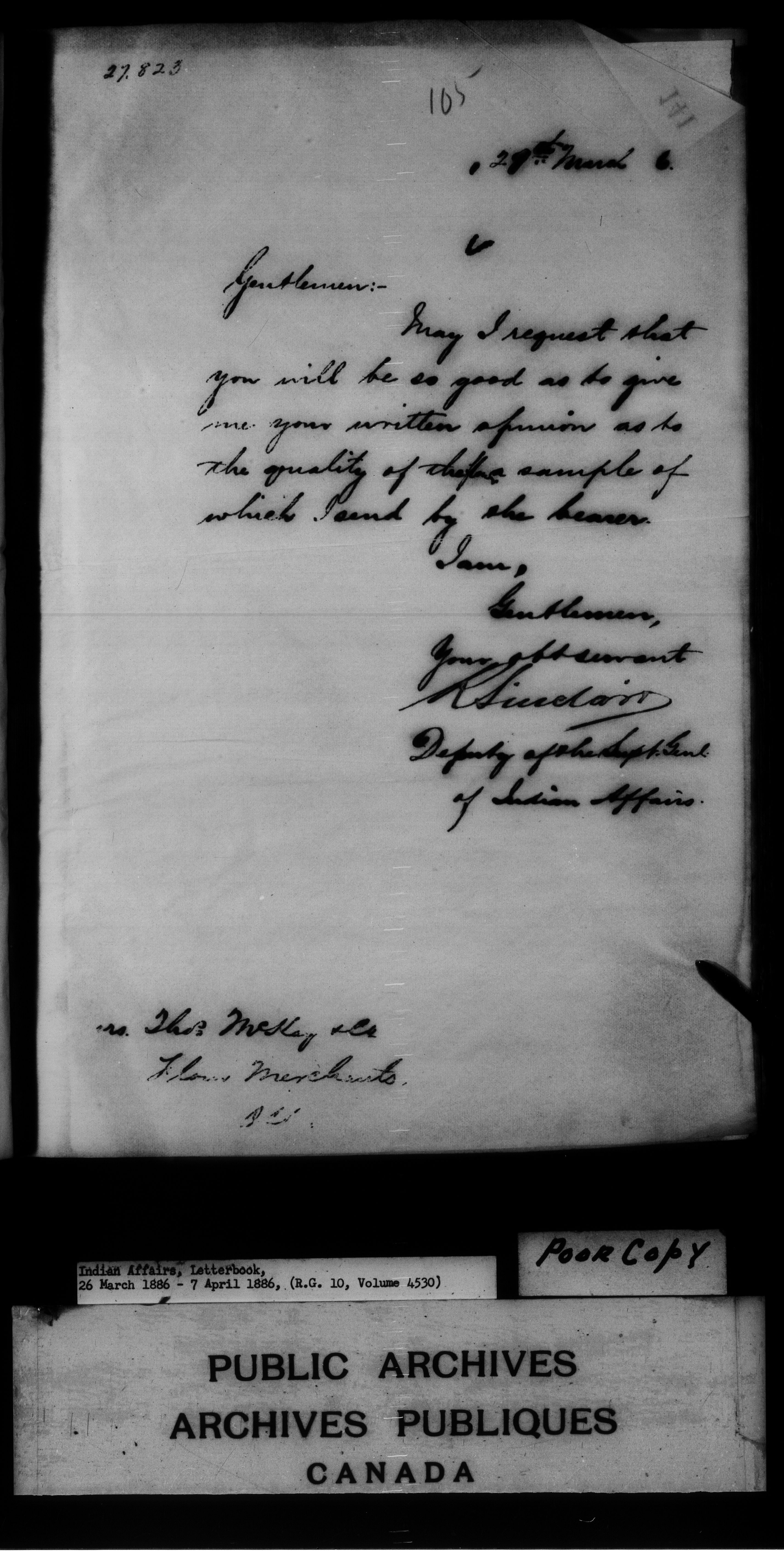 Department of Indian Affairs : Letterbooks of out-going correspondence relating to the administration of Indian Affairs in both eastern and western Canada, 1871-1920 - 7650