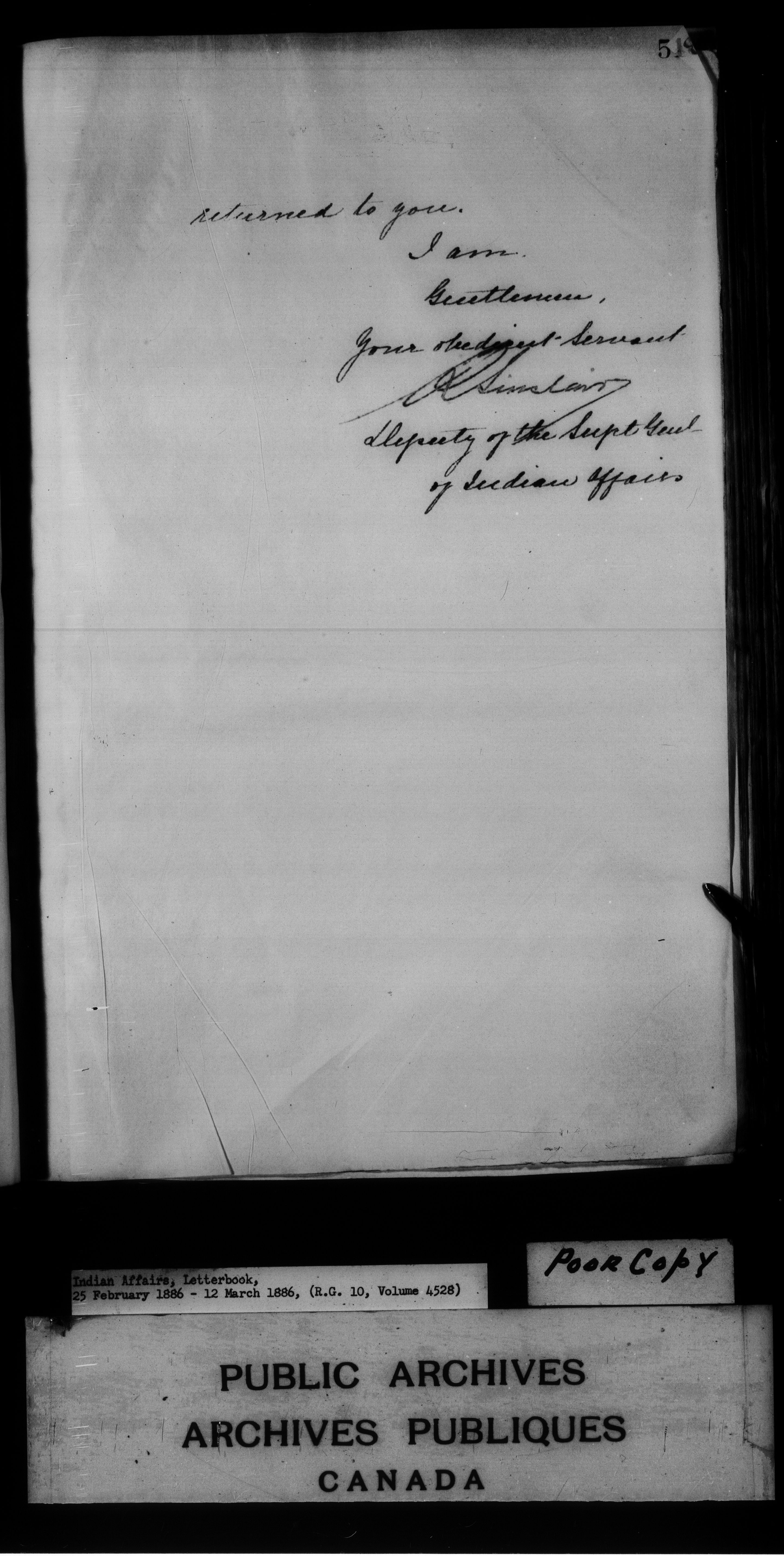 Department of Indian Affairs : Letterbooks of out-going correspondence relating to the administration of Indian Affairs in both eastern and western Canada, 1871-1920 - 7650
