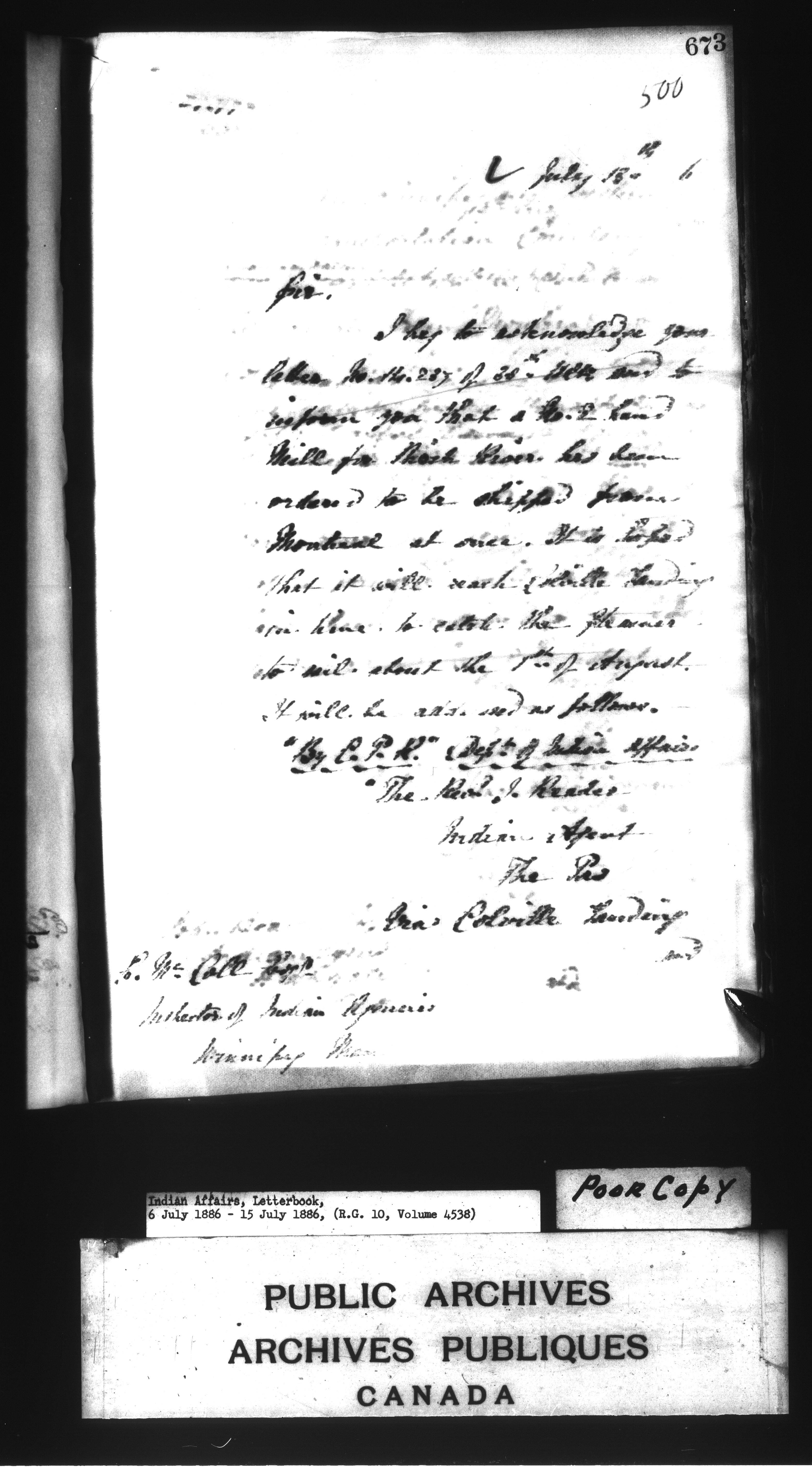 Department of Indian Affairs : Letterbooks of out-going correspondence relating to the administration of Indian Affairs in both eastern and western Canada, 1871-1920 - 7655