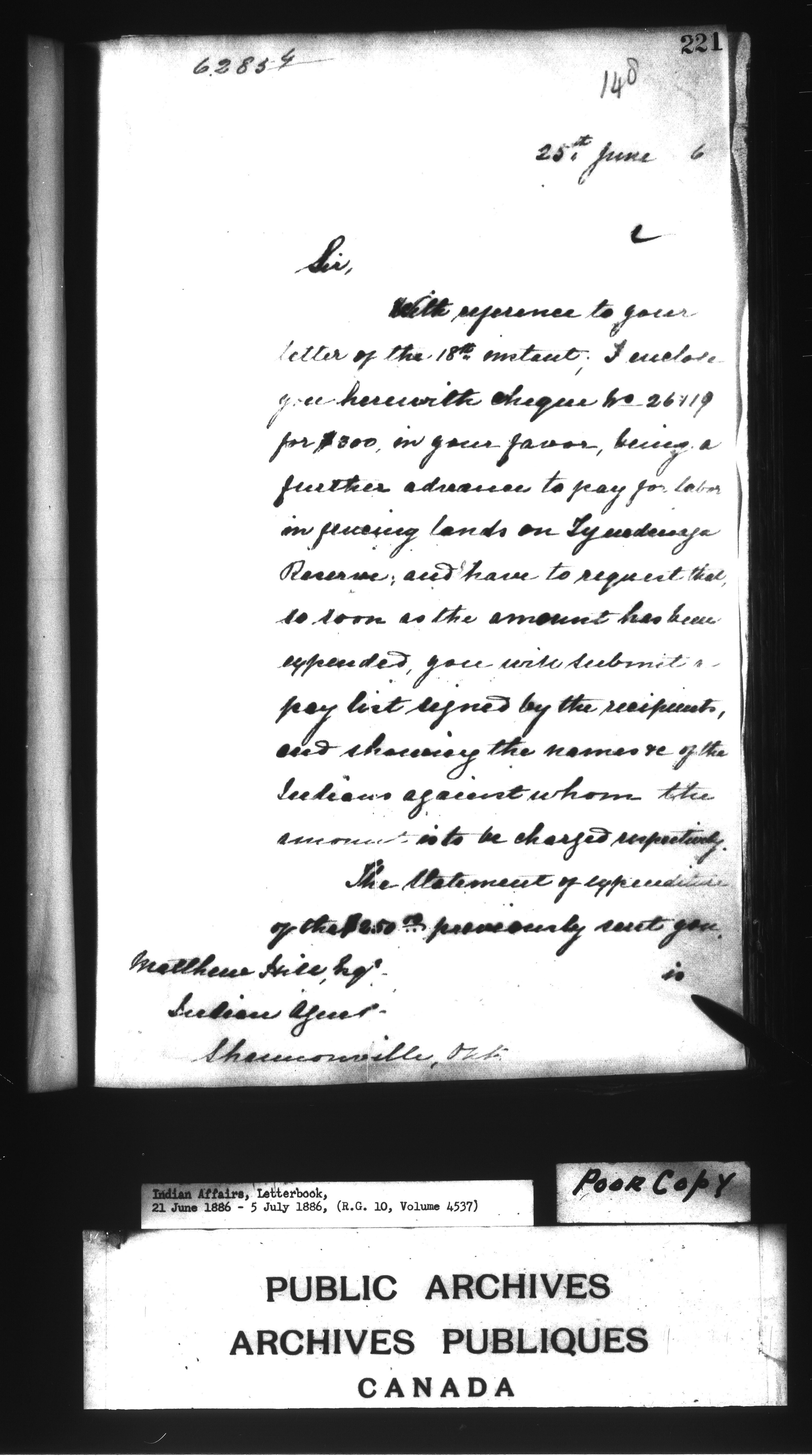 Department of Indian Affairs : Letterbooks of out-going correspondence relating to the administration of Indian Affairs in both eastern and western Canada, 1871-1920 - 7655