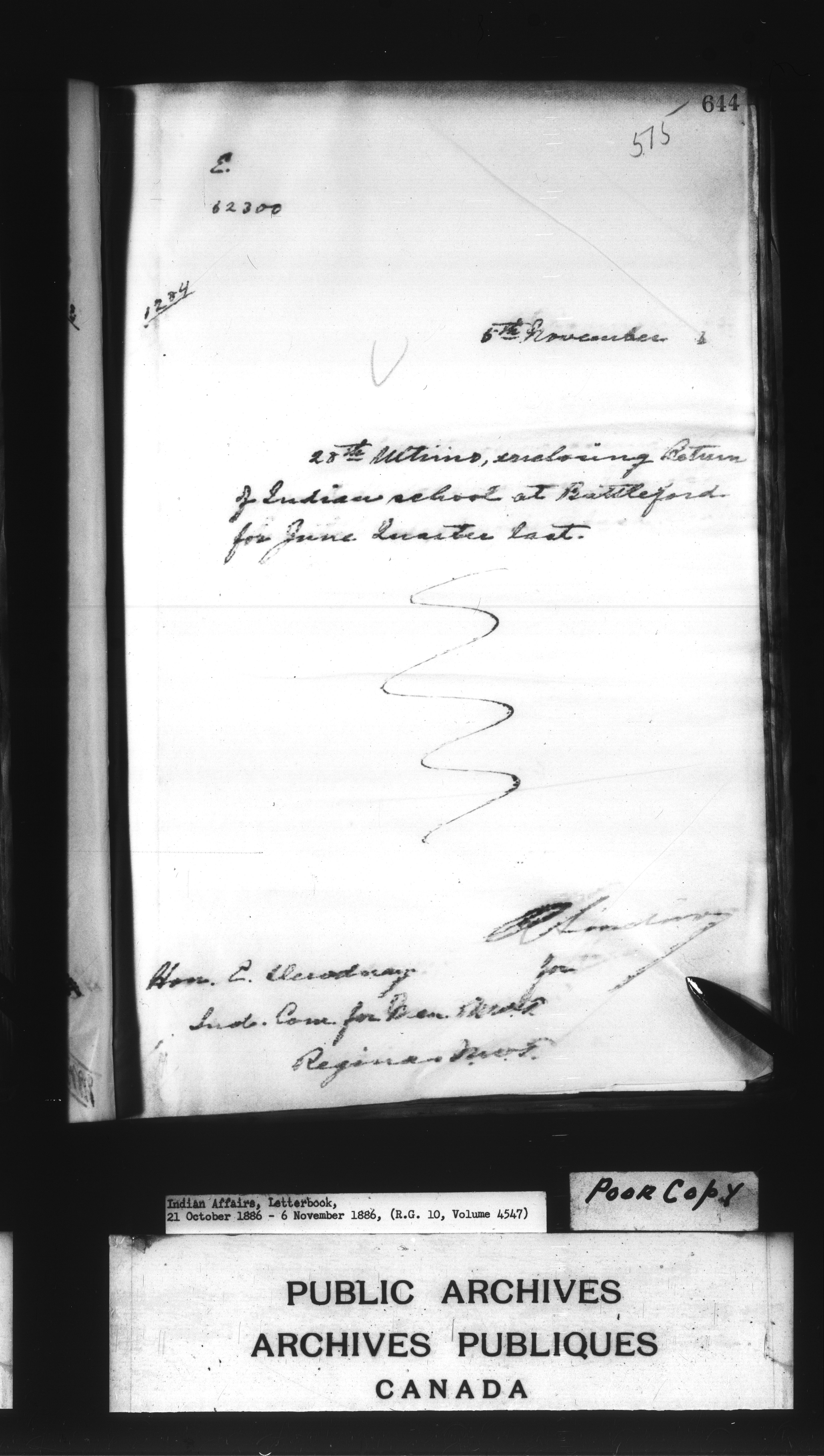 Department of Indian Affairs : Letterbooks of out-going correspondence relating to the administration of Indian Affairs in both eastern and western Canada, 1871-1920 - 7661