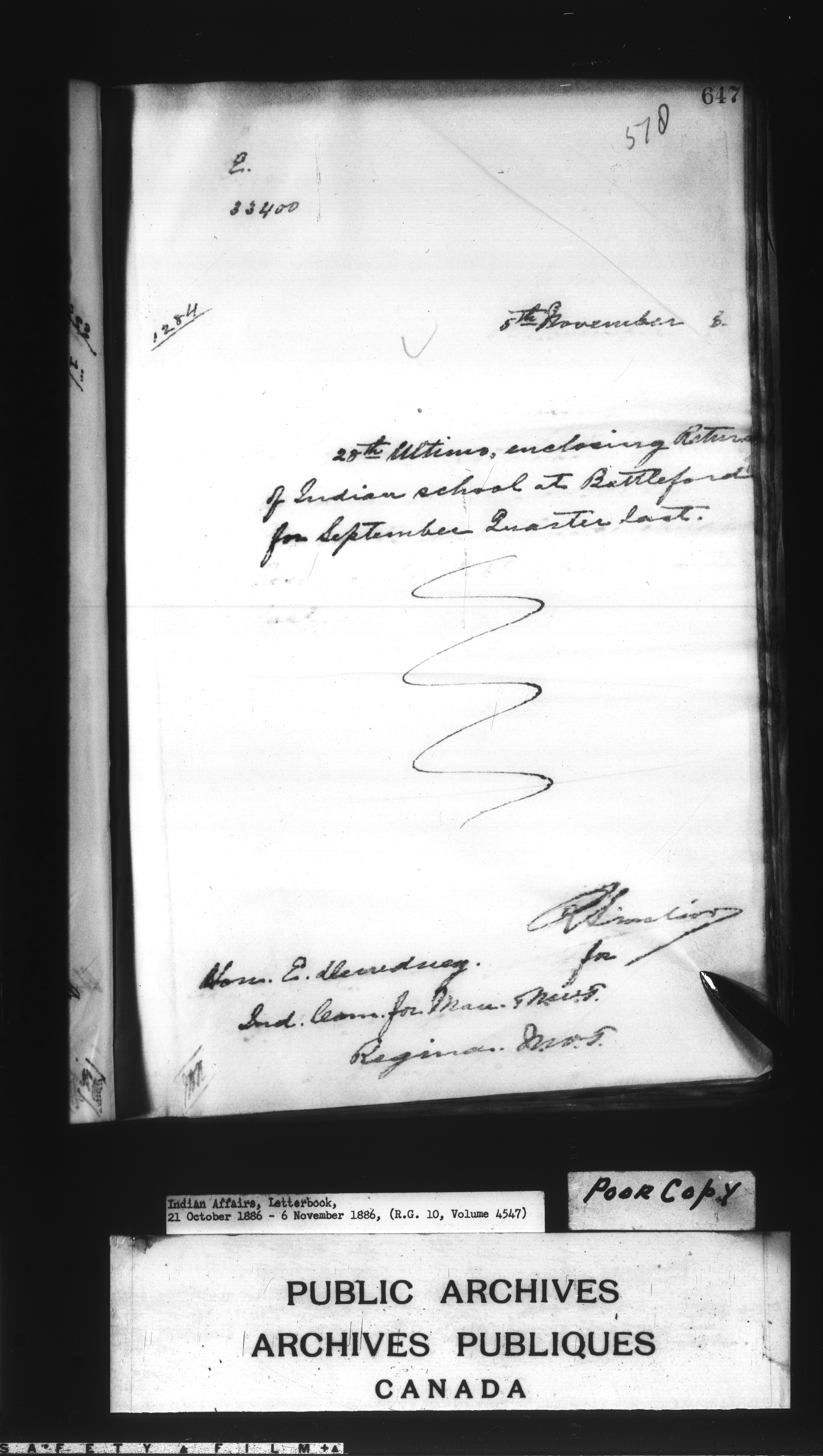 Department of Indian Affairs : Letterbooks of out-going correspondence relating to the administration of Indian Affairs in both eastern and western Canada, 1871-1920 - 7661