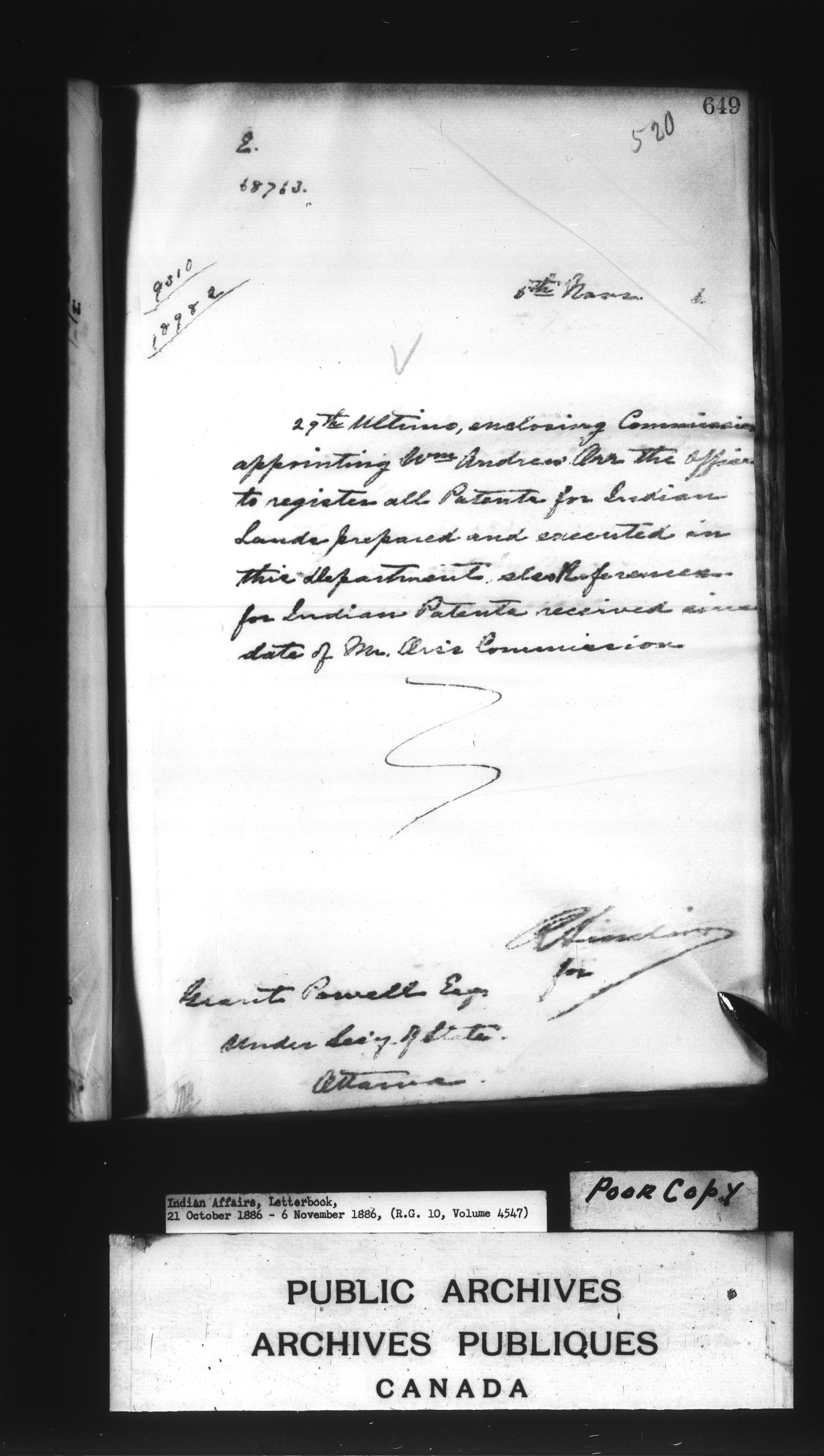 Department of Indian Affairs : Letterbooks of out-going correspondence relating to the administration of Indian Affairs in both eastern and western Canada, 1871-1920 - 7661