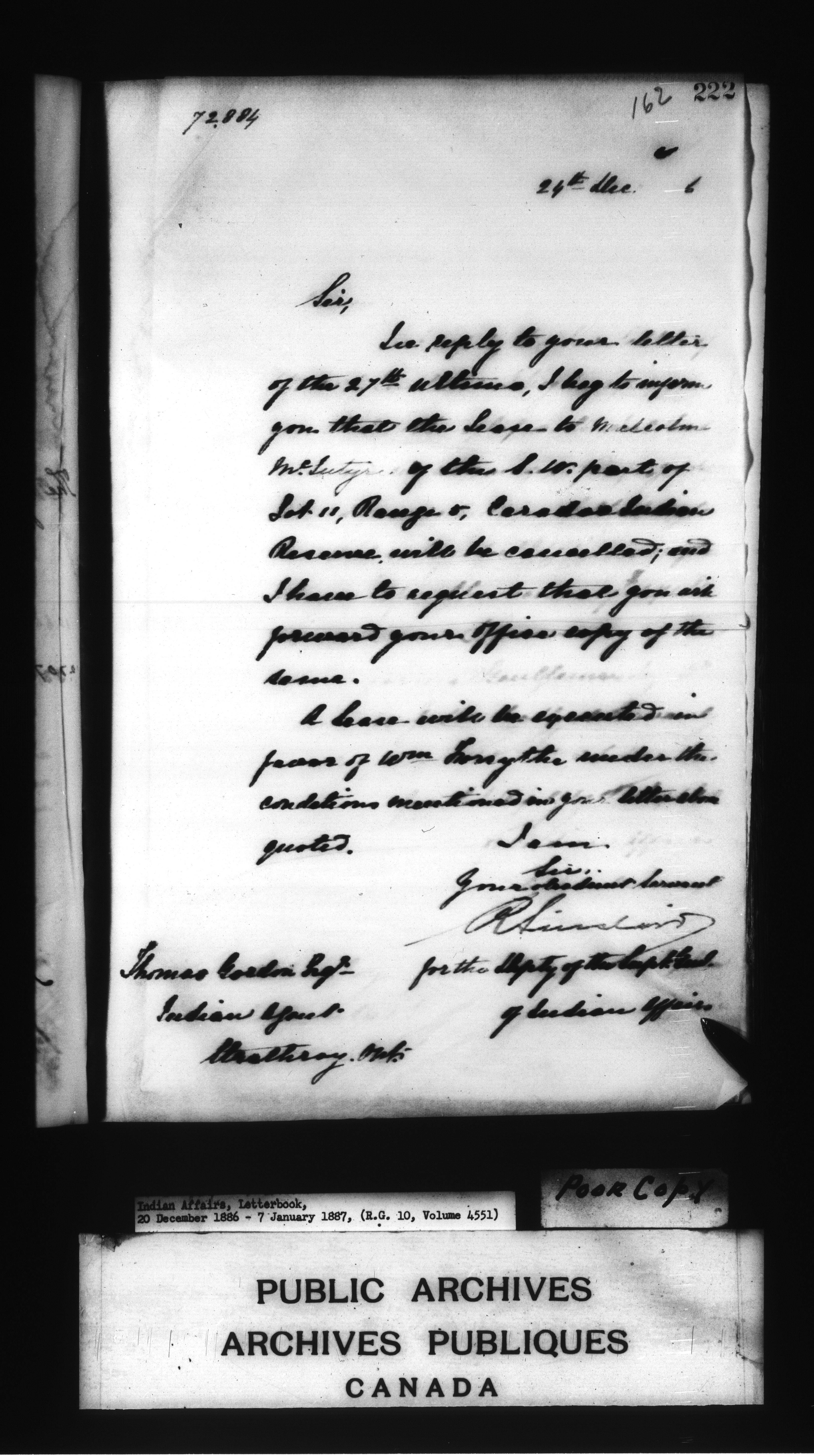 Department of Indian Affairs : Letterbooks of out-going correspondence relating to the administration of Indian Affairs in both eastern and western Canada, 1871-1920 - 7663