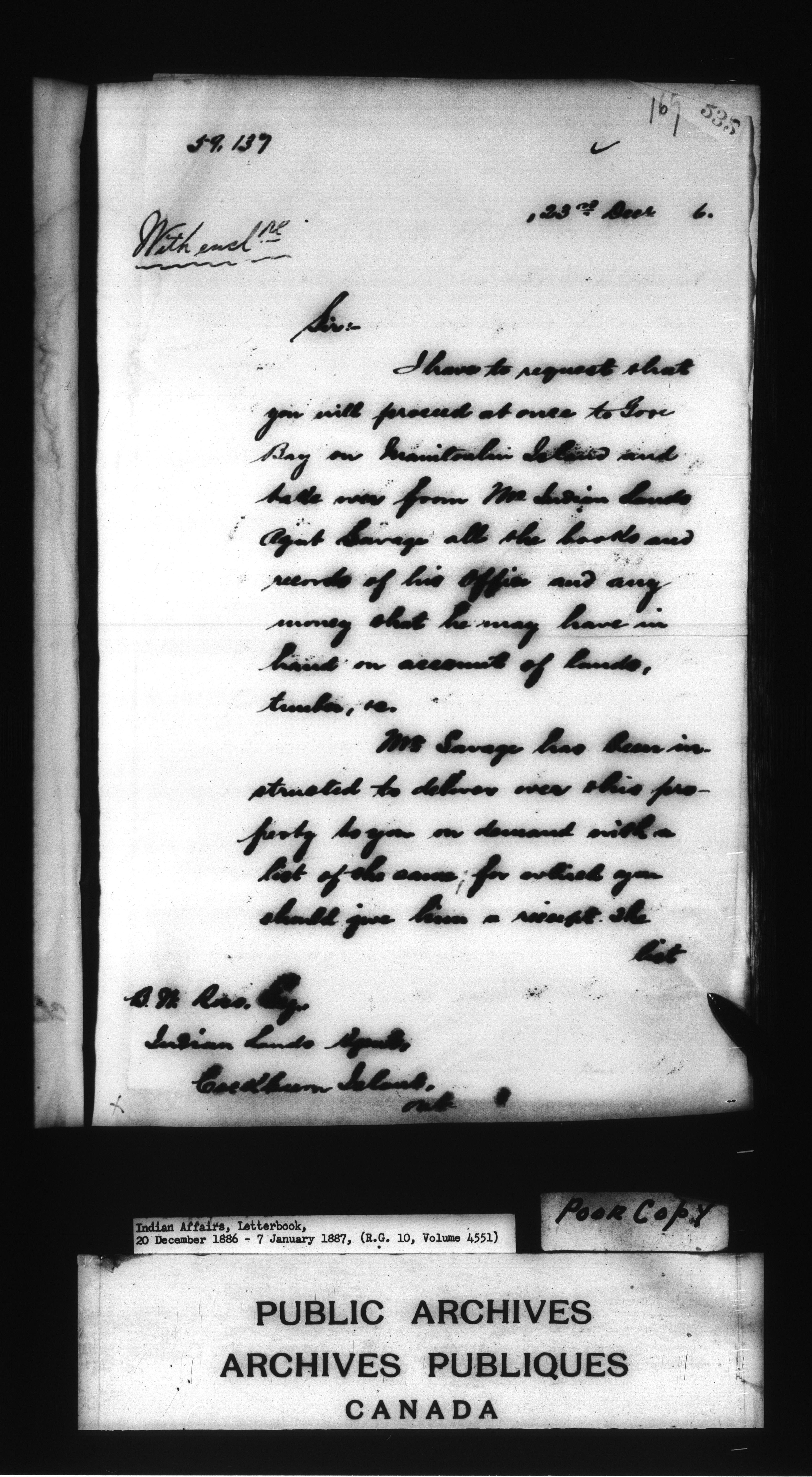 Department of Indian Affairs : Letterbooks of out-going correspondence relating to the administration of Indian Affairs in both eastern and western Canada, 1871-1920 - 7663