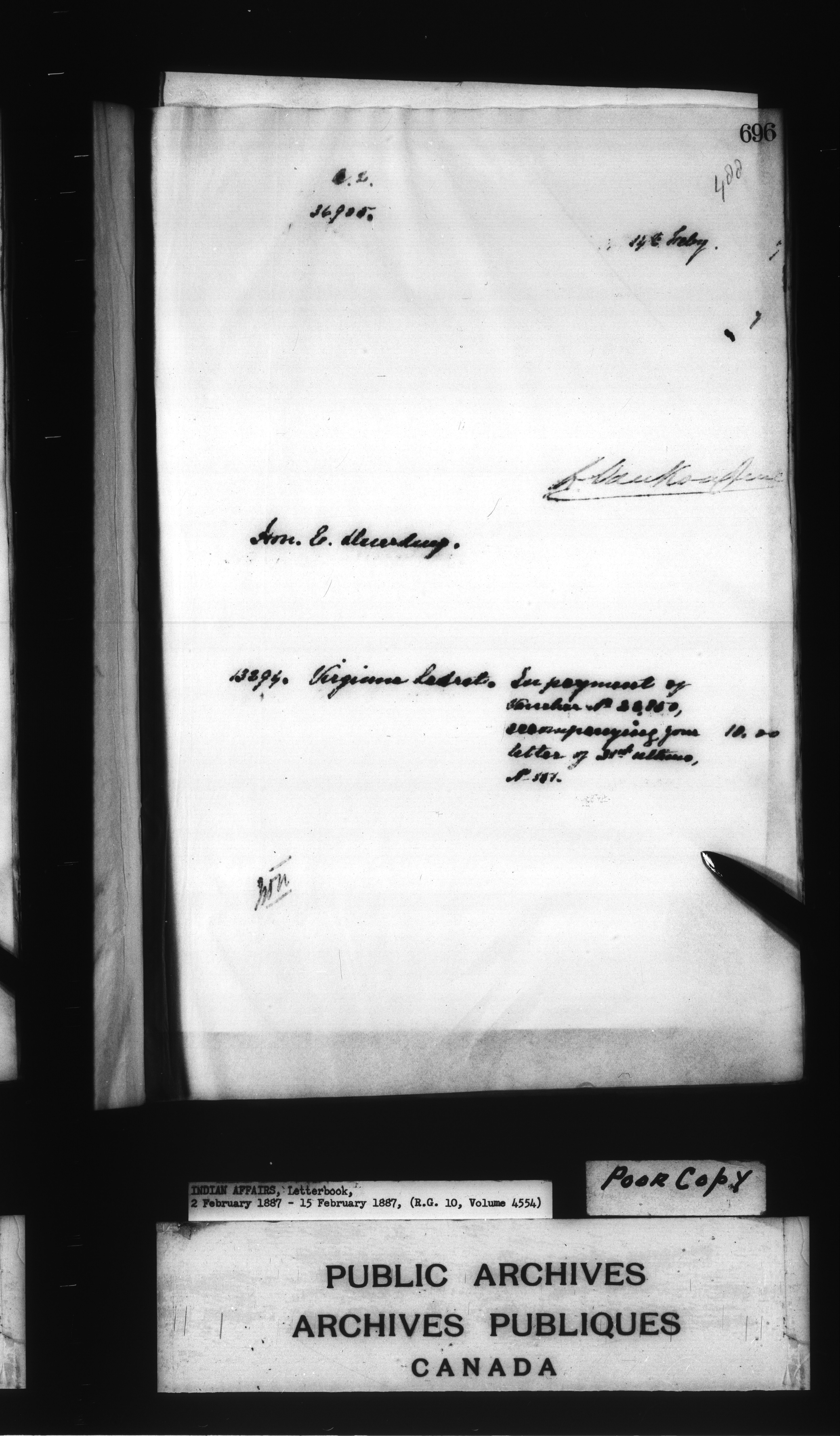 Department of Indian Affairs : Letterbooks of out-going correspondence relating to the administration of Indian Affairs in both eastern and western Canada, 1871-1920 - 7665