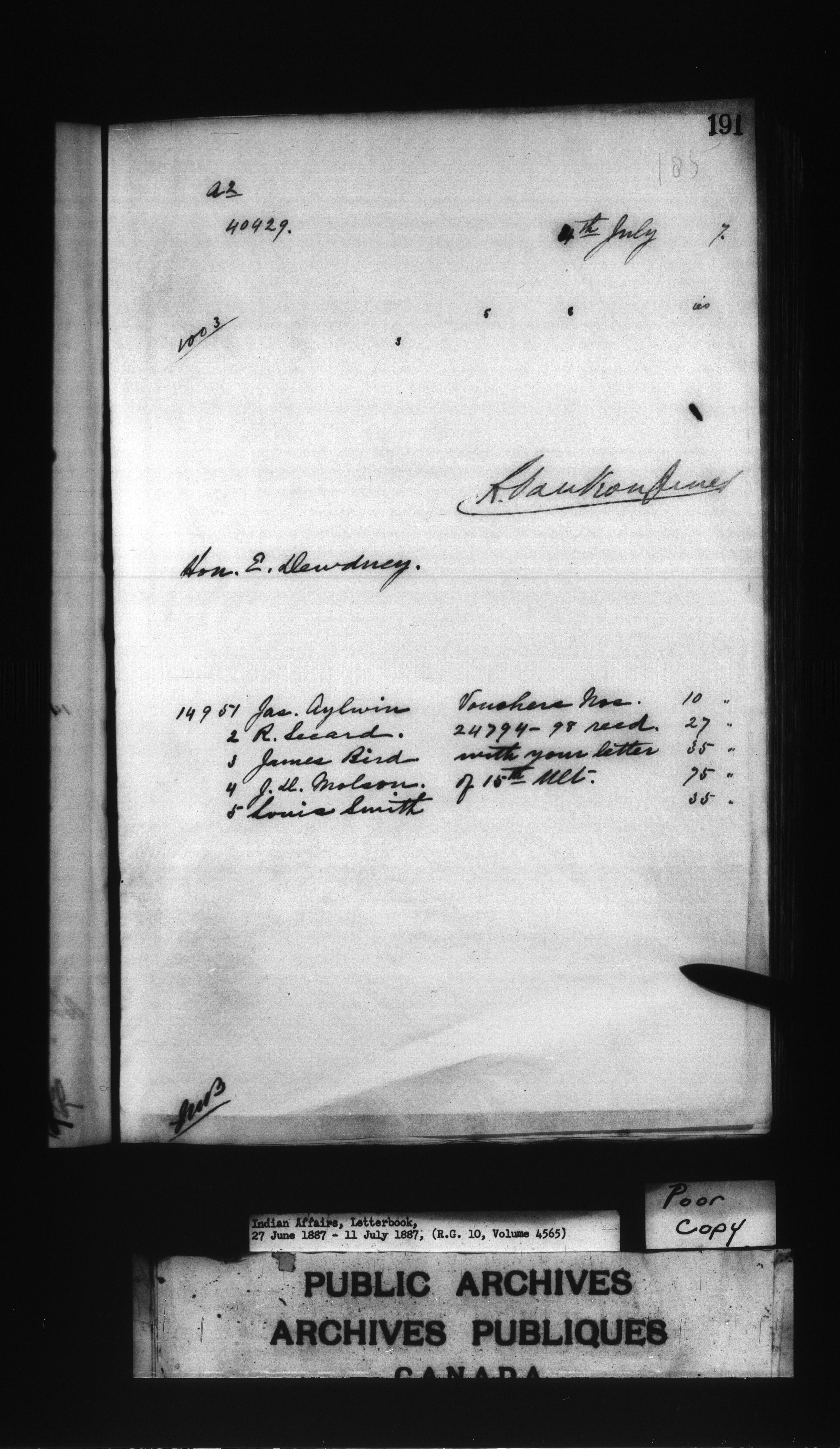 Department of Indian Affairs : Letterbooks of out-going correspondence relating to the administration of Indian Affairs in both eastern and western Canada, 1871-1920 - 7670