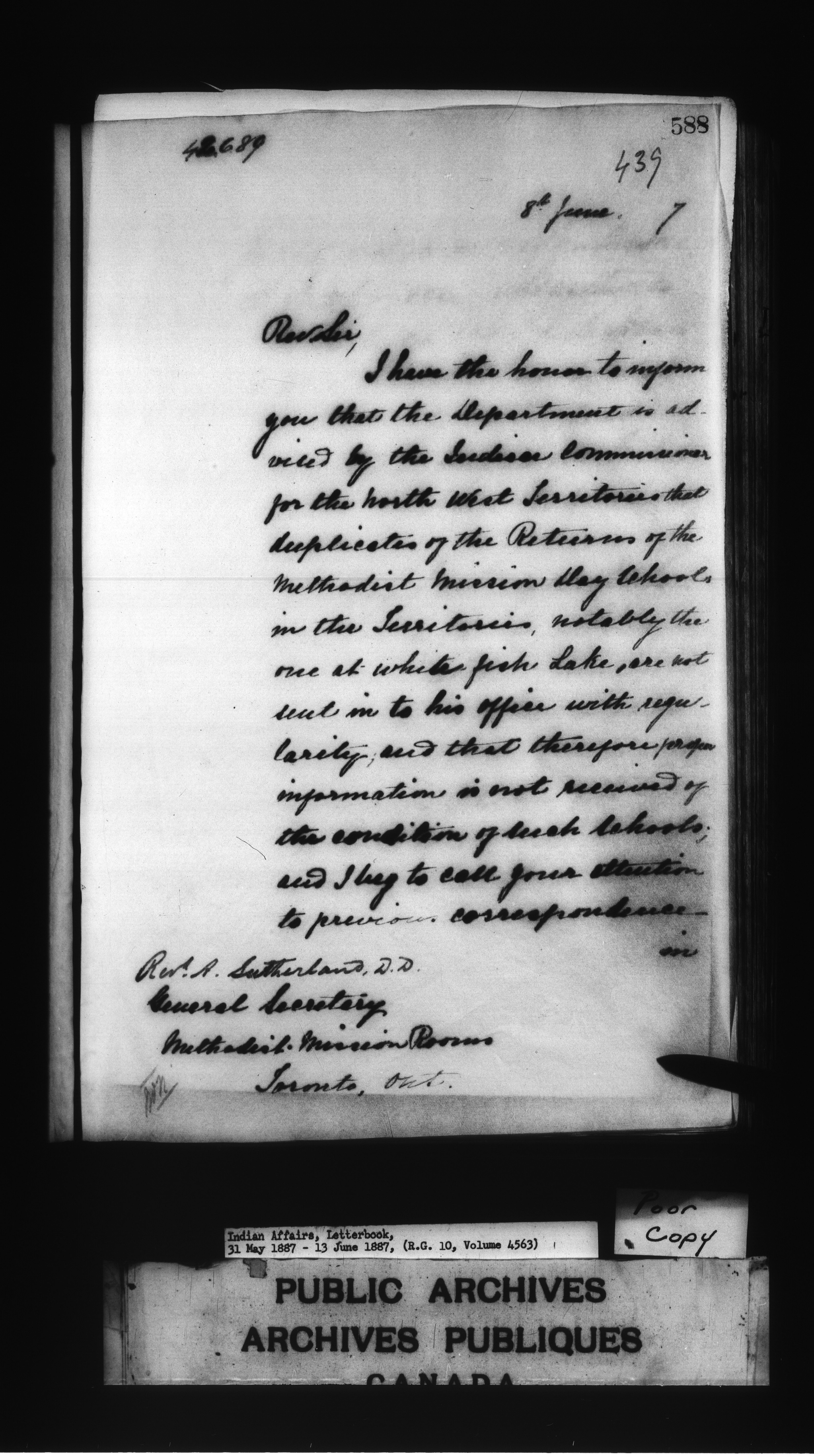Department of Indian Affairs : Letterbooks of out-going correspondence relating to the administration of Indian Affairs in both eastern and western Canada, 1871-1920 - 7670